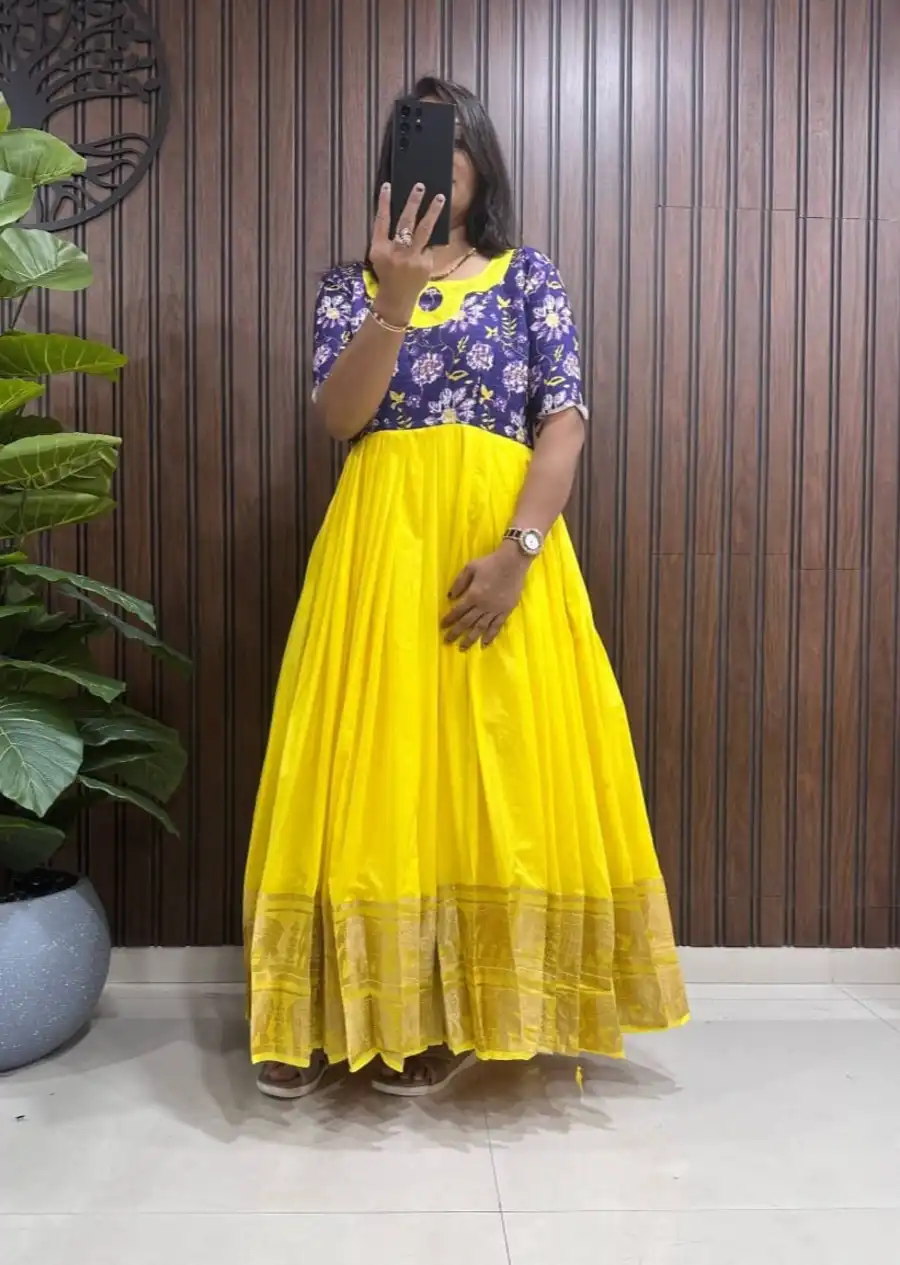 NEW ARRIVAL SILK ZARI WEAVING BORDER WORK GOWN YELLOW