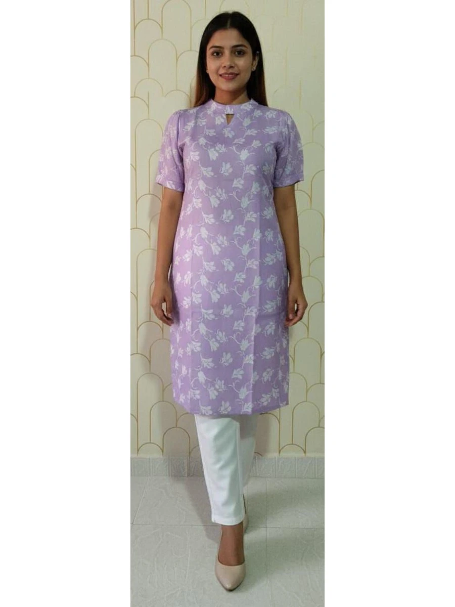 NEW ARRIVAL SLUB COTTON DIGITAL PRINT WORK KURTI LAVENDER
