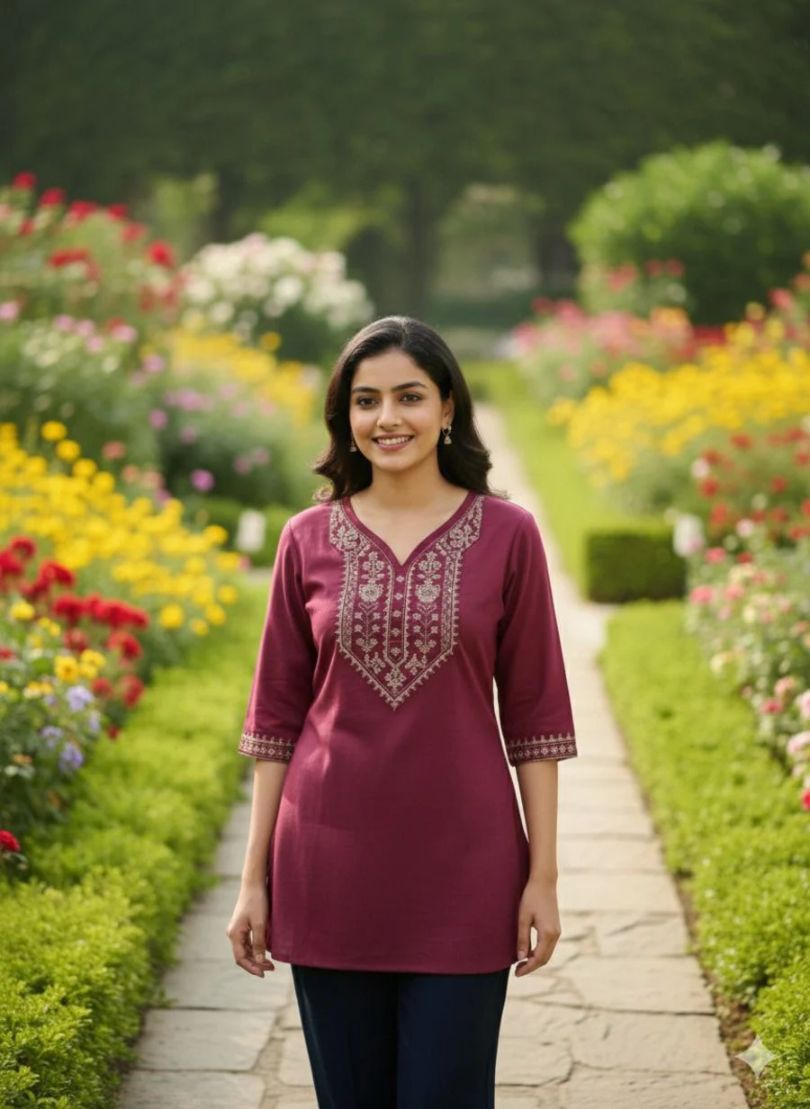 NEW ARRIVAL SLUB COTTON EMBROIDERY WORK ONLY TOP MAROON