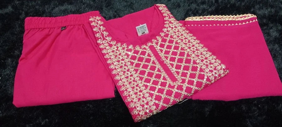 KURTI FABRIC :- 14KG REYON WITH EMBROIDERY DESIGN WORK FULL STITCH NAYRA PATTERN KURTI