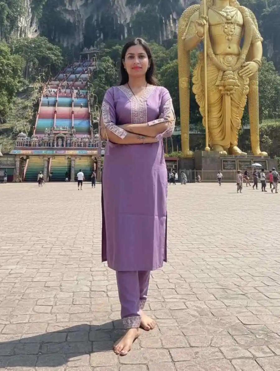 NEW ARRIVAL SLUB COTTON EMBROIDERY WORK TOP PENT SET LAVENDER