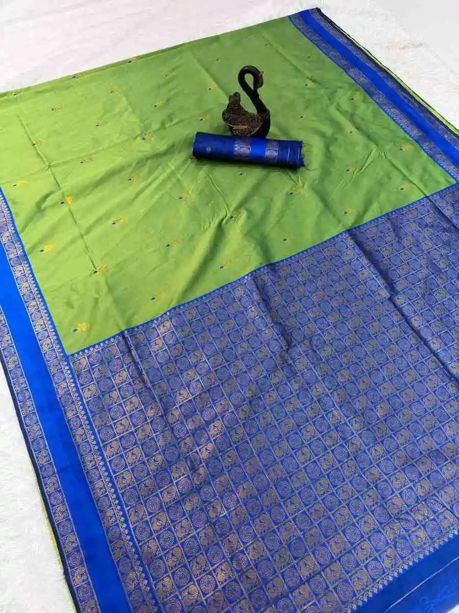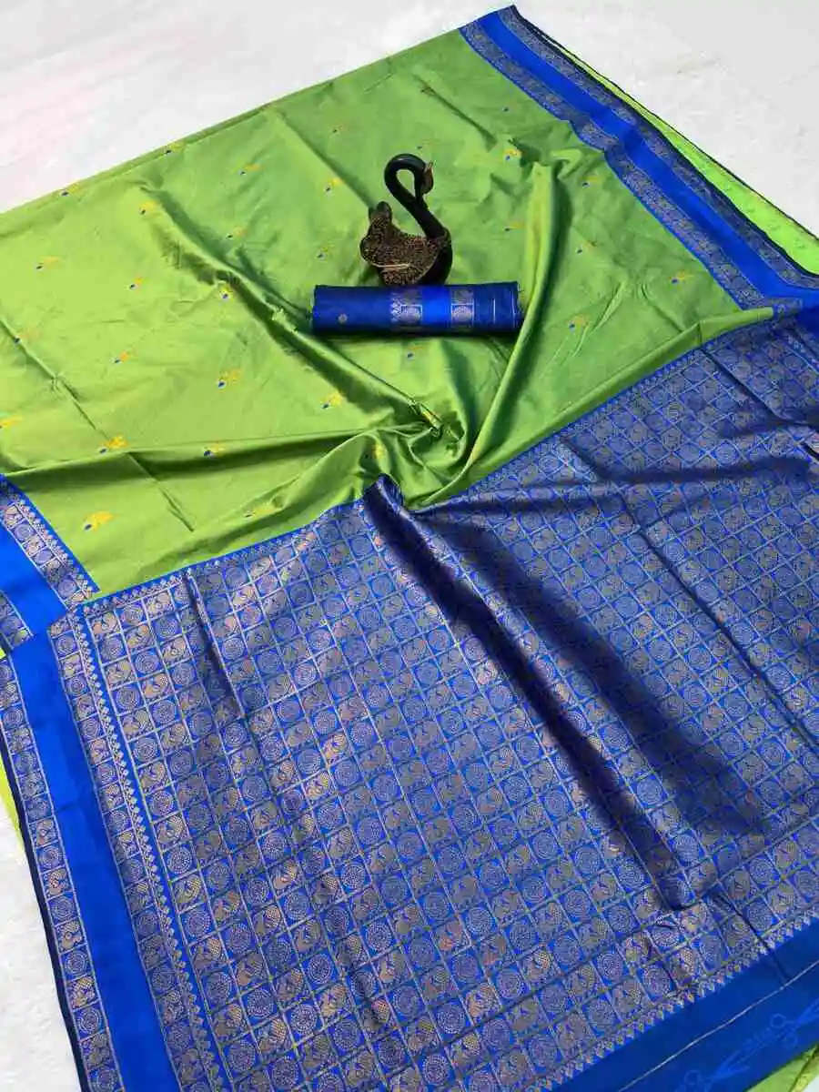 NEW ARRIVAL SOFT SILK ZARI WOVEN WORK SAREE WITH UNSTITCHED BLOUSE PARROT GREEN