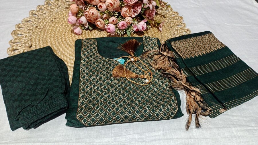 NEW ARRIVAL SOUTH COTTON THREAD EMBROIDERY WORK TOP BOTTOM WITH DUPATTA GREEN