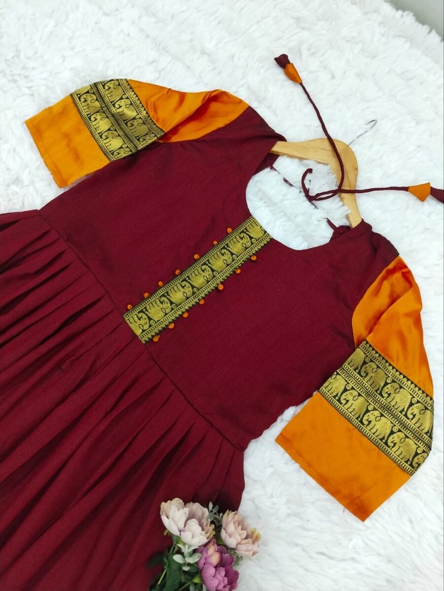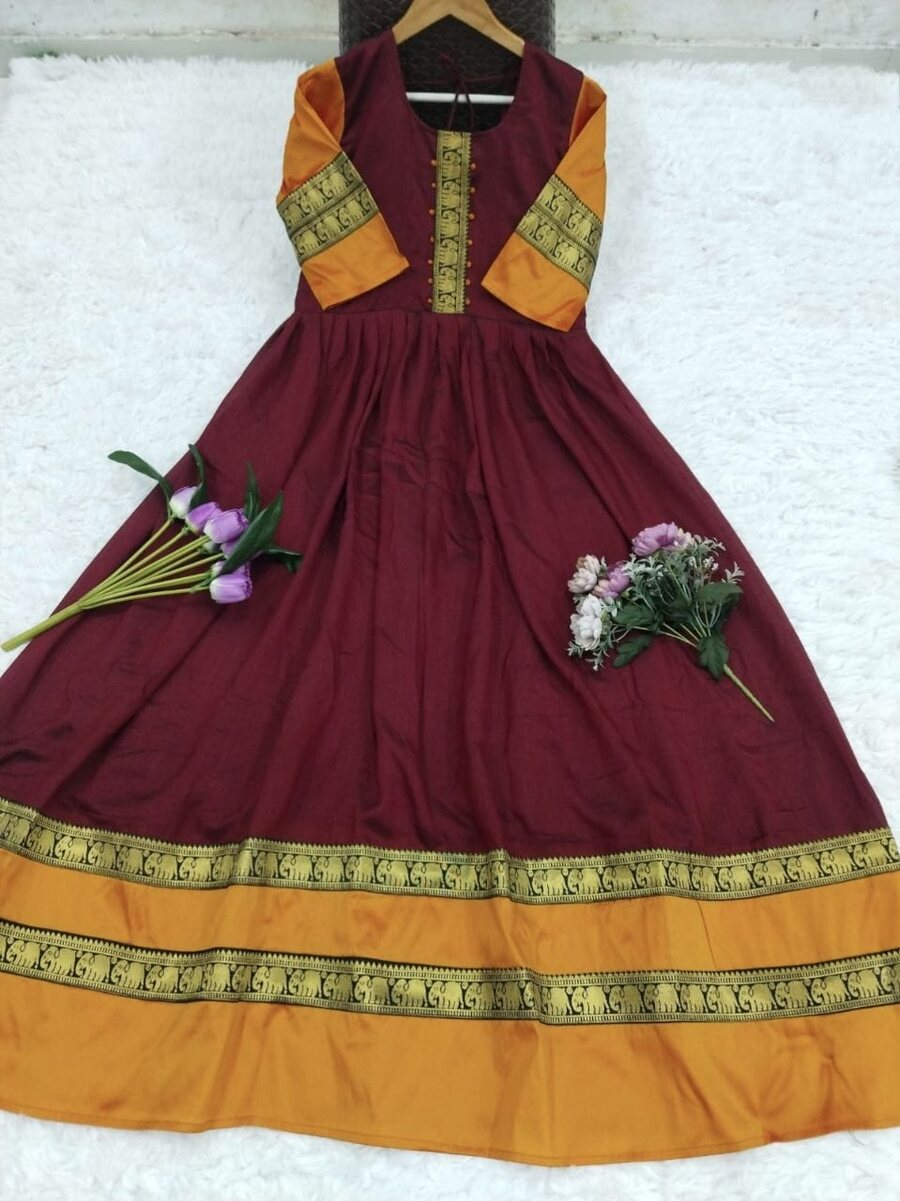 NEW ARRIVAL VICHITRA SILK JACQUARD LACE BORDER WORK ANARAKALI GOWN MAROON