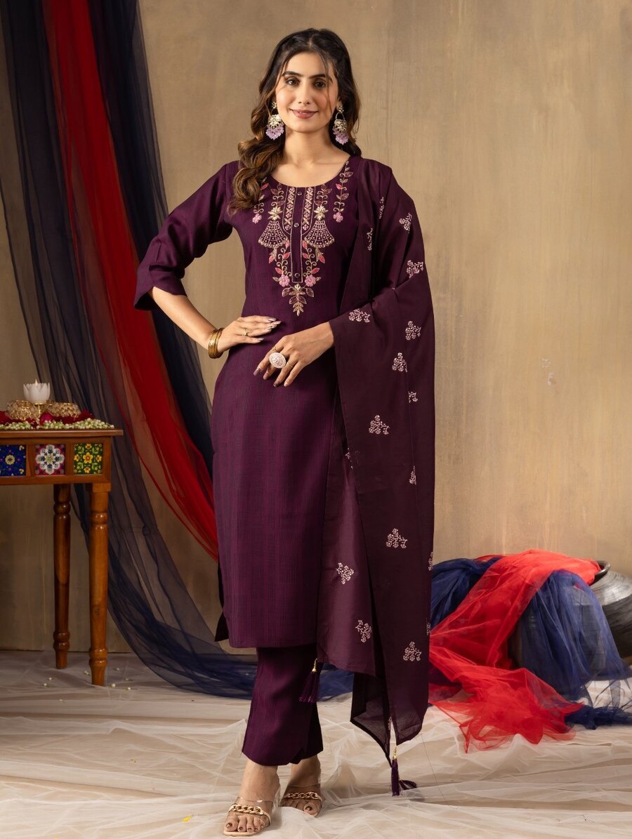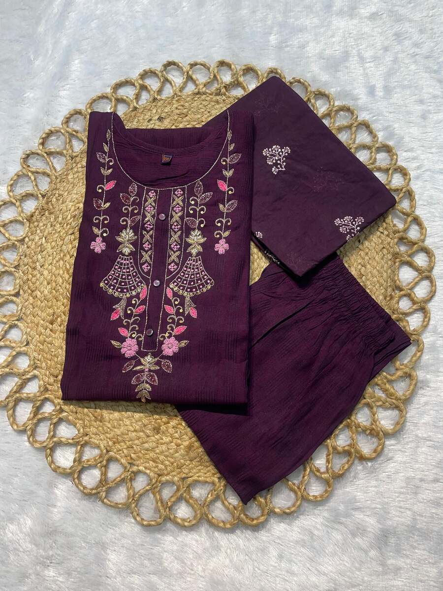 NEW ARRIVAL VISCOSE HAND WORK TOP BOTTOM WITH DUPATTA PURPLE