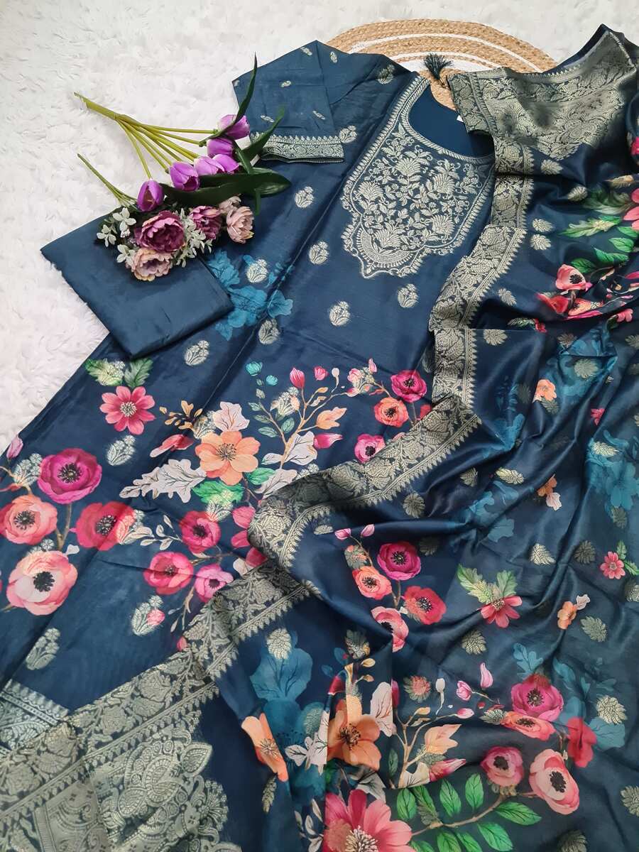 NEW ARRIVAL VISCOSE JACQUARD WORK TOP BOTTOM WITH DUPATTA BLUE