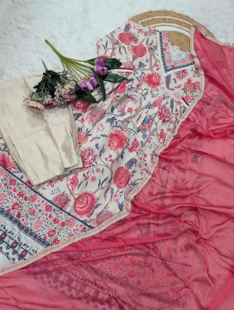 NEW ARRIVAL VISCOSE RAYON PRINT WORK TOP BOTTOM WITH DUPATTA PINK
