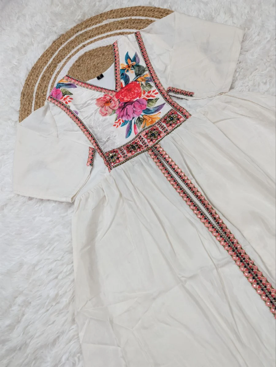 KURTI FABRIC :- 14KG REYON WITH EMBROIDERY DESIGN WORK FULL STITCH NAYRA PATTERN KURTI