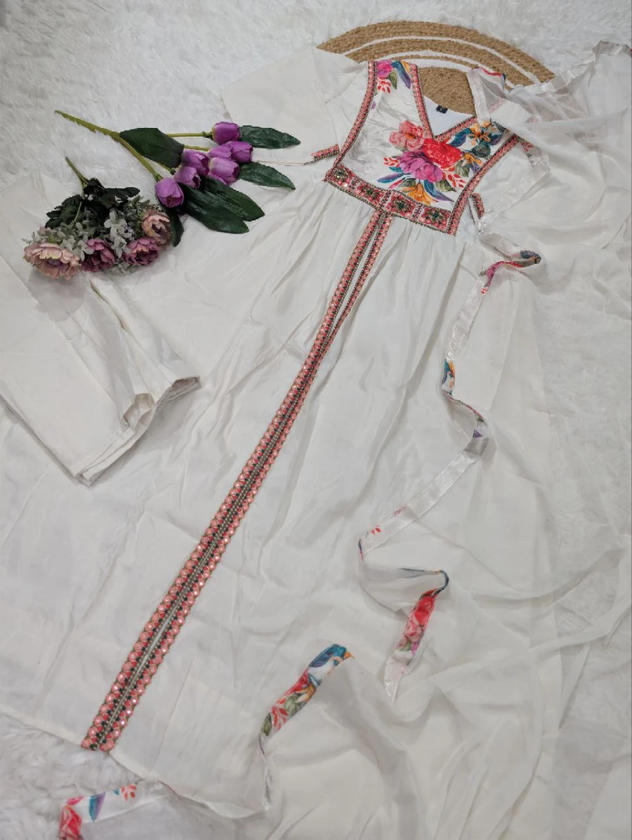 NEW ARRIVAL VISCOSE SILK SEQUENCE EMBROIDERY WORK TOP BOTTOM WITH DUPATTA OFF WHITE