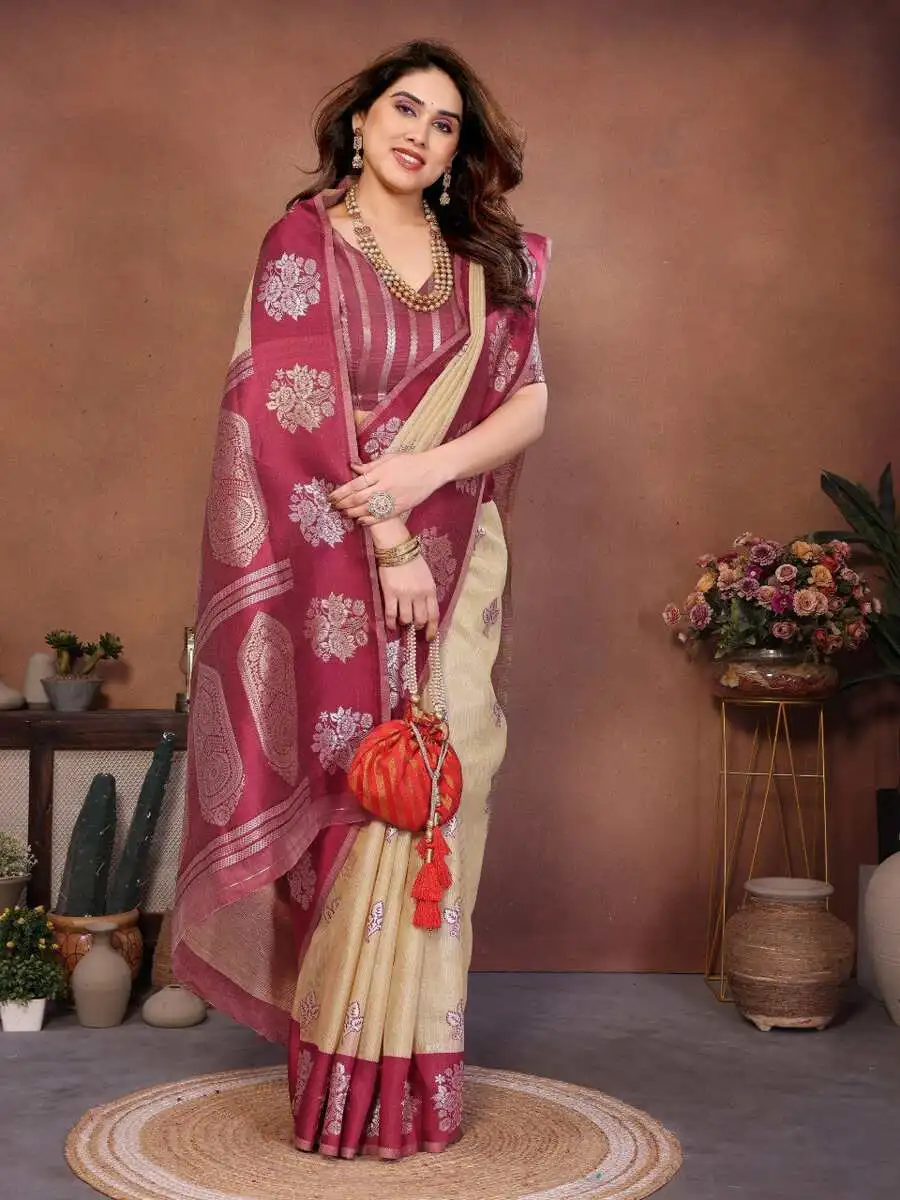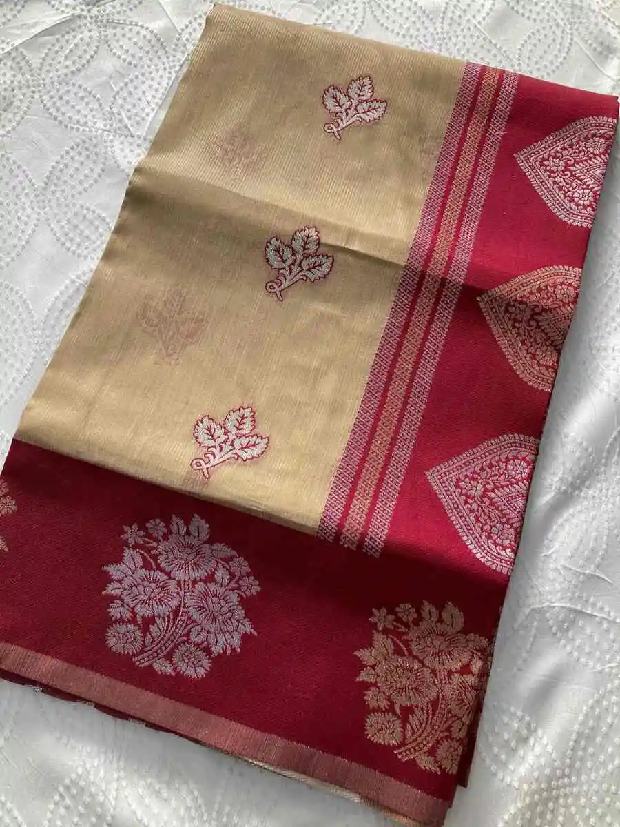 GOLDEN ZARI WEAVING JACQUARD SAREE WITH RICH PALLU AND BEAUTIFUL WEAVING BLOUSE
