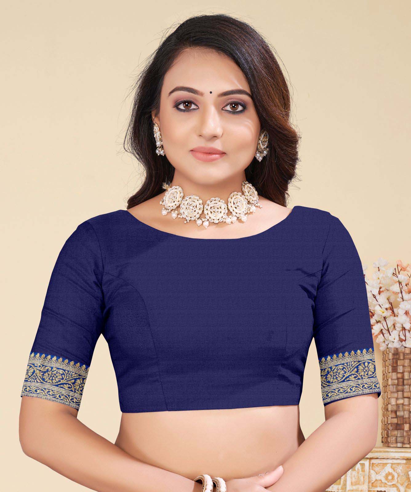UNSTITCHED BLOUSE: BANGLORI SILK WITH EMBROIDERY DESIGN WORK AND PEARLS DIAMOND