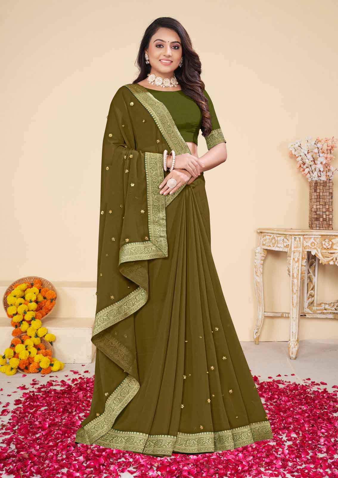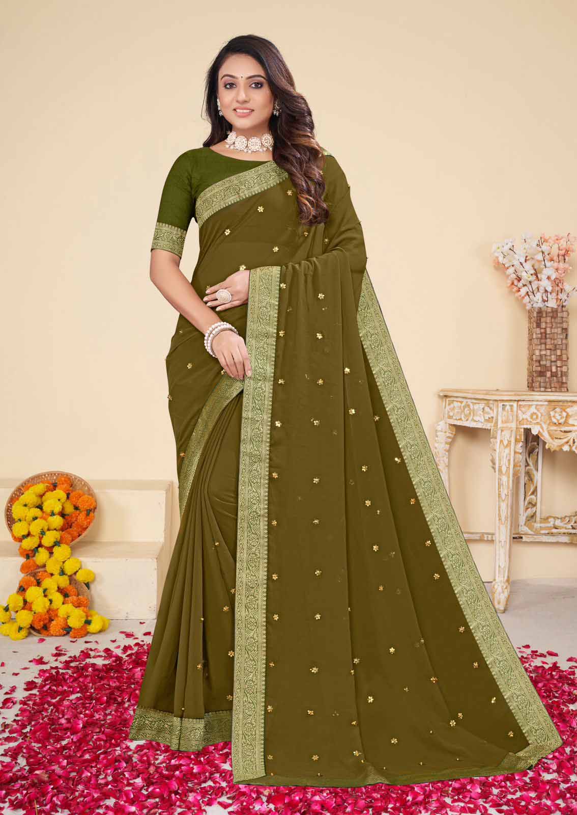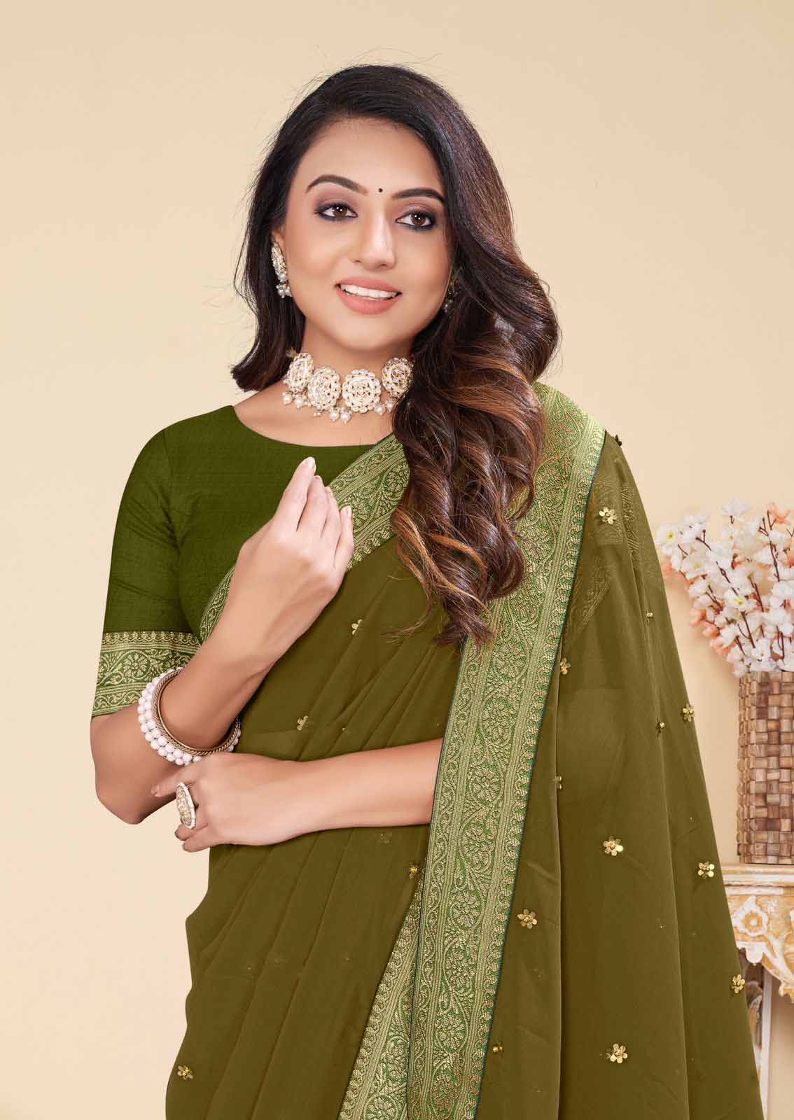 PARTY WEAR GEORGETTE DIAMOND WORK SAREE WITH UNSTITCHED BLOUSE PISTA