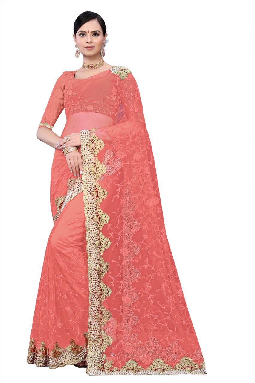 SAREE FABRIC: NET WITH EMBROIDERY HEAVY DESIGN WORK WITH PEARL DIAMOND STONE