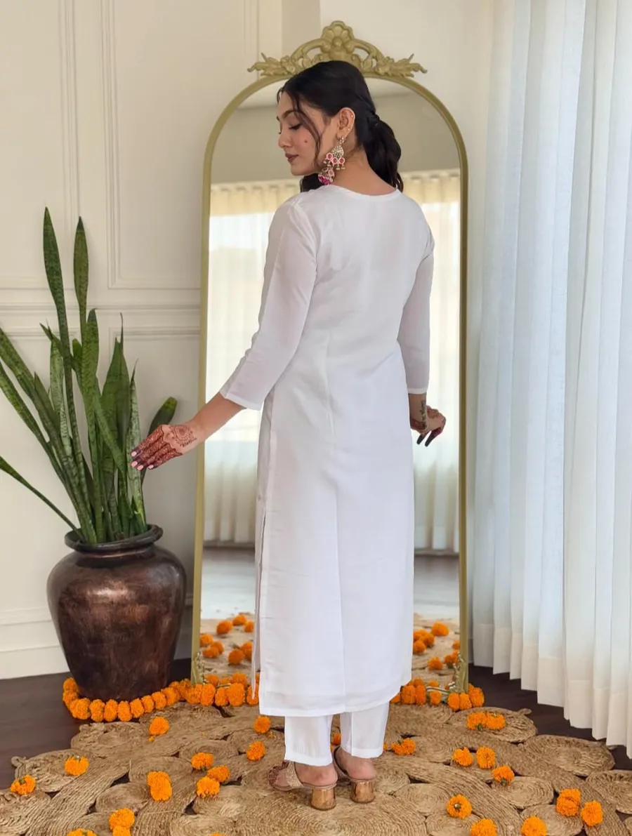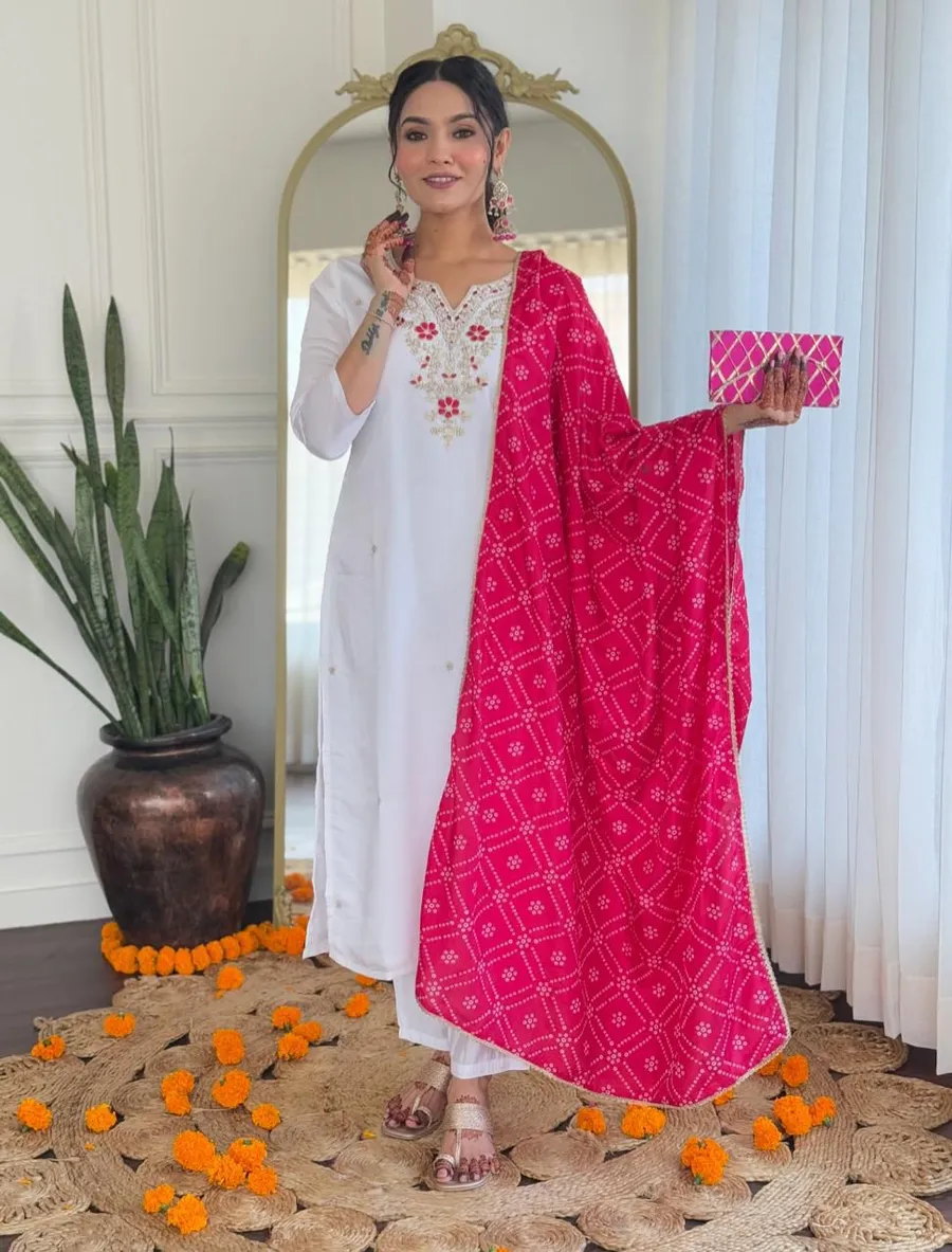 RICH LOOK BSY VISCOSE EMBROIDERY WORK TOP BOTTOM WITH DUPATTA WHITE AND PINK