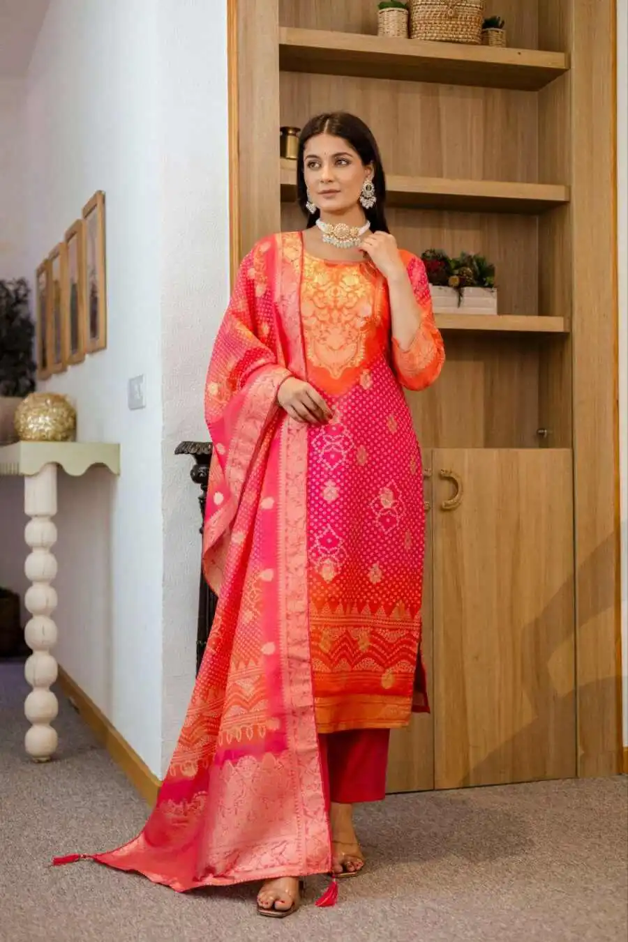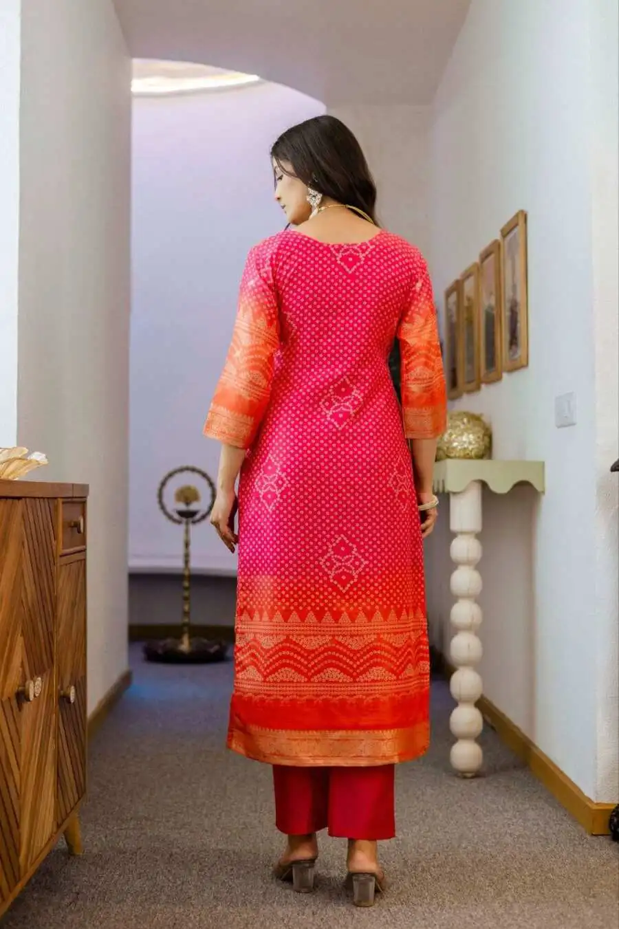 KURTI FABRIC : RAYON BANDHANI PRINTED STRAIGHT KURTI NAYARA CUT