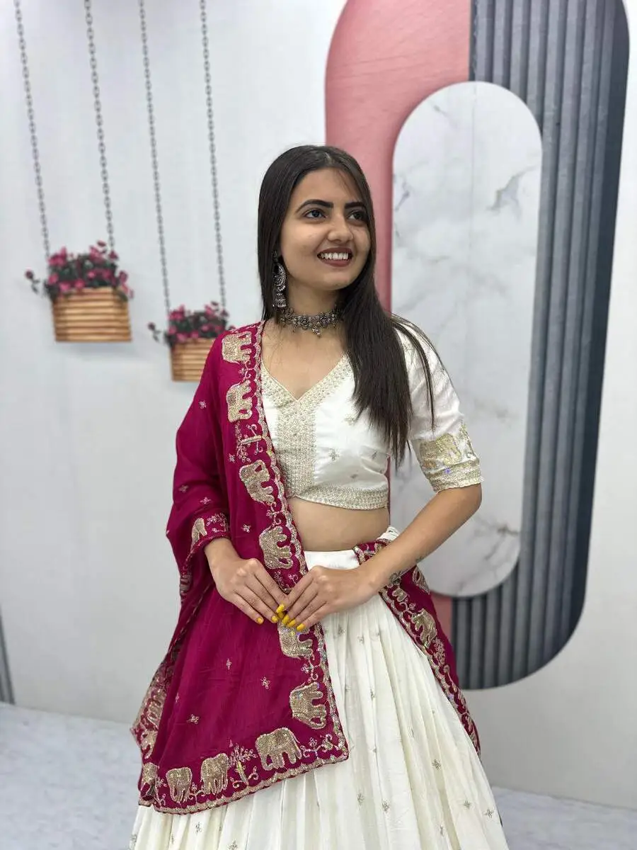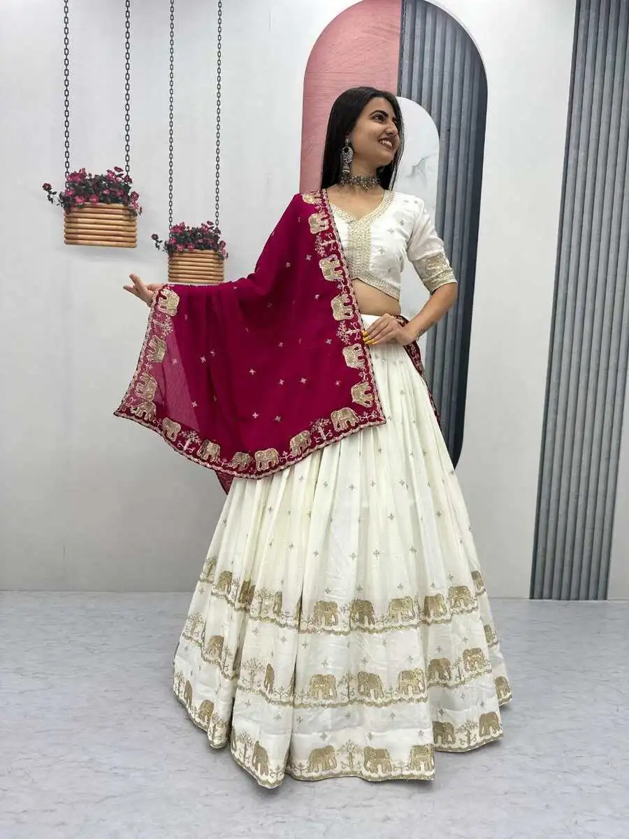 RICH LOOK CHINON EMBROIDERY SEQUENCE WORK LEHENGA CHOLI WITH DUPATTA RANI AND OFF WHITE