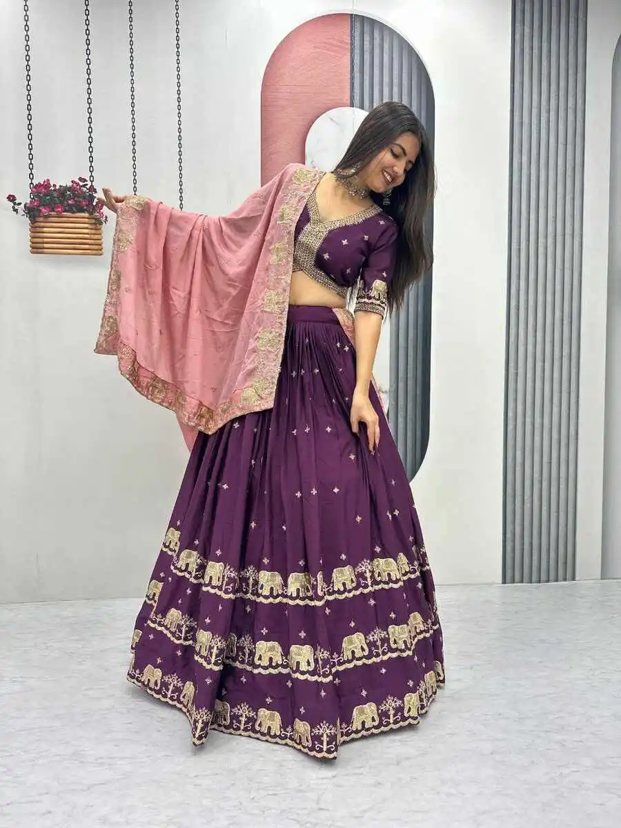 RICH LOOK CHINON EMBROIDERY SEQUENCE WORK LEHENGA CHOLI WITH DUPATTA WINE