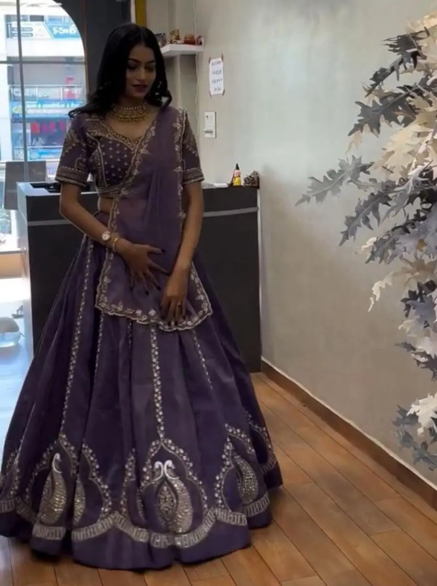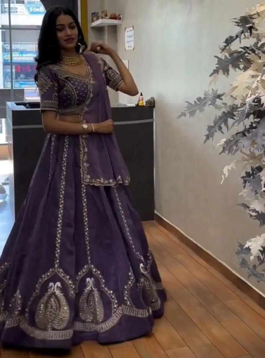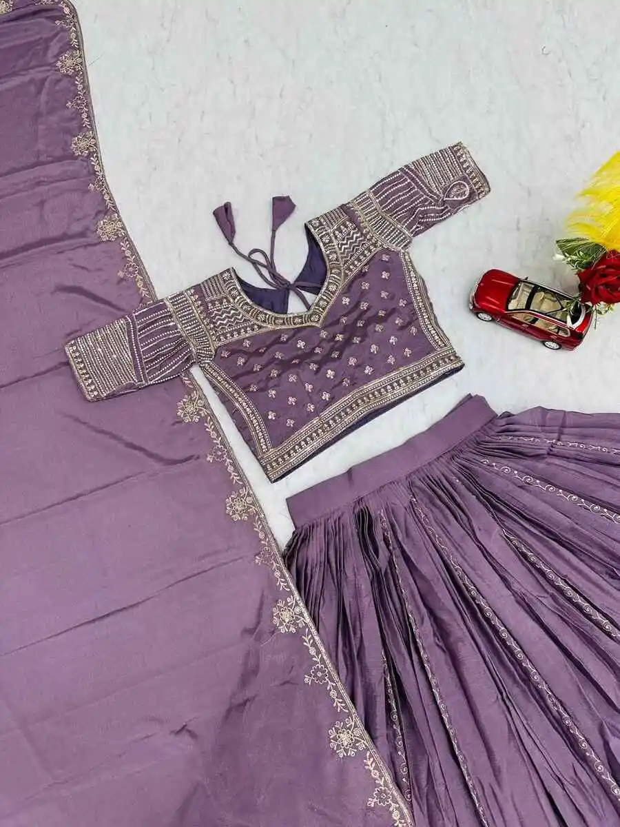 RICH LOOK CHINON EMBROIDERY THREAD AND SEQUENCE WORK LEHENGA CHOLI WITH DUPATTA PURPLE