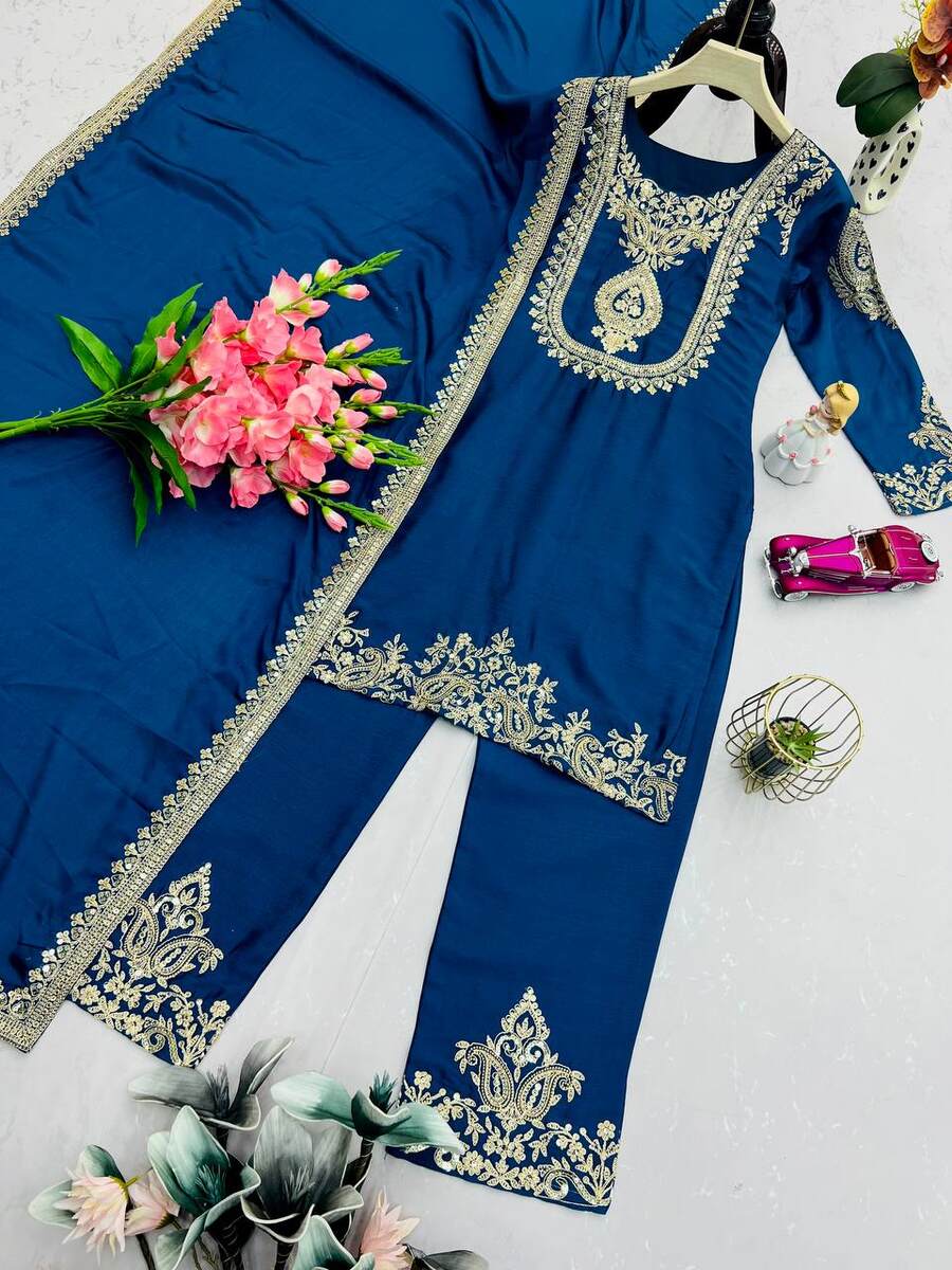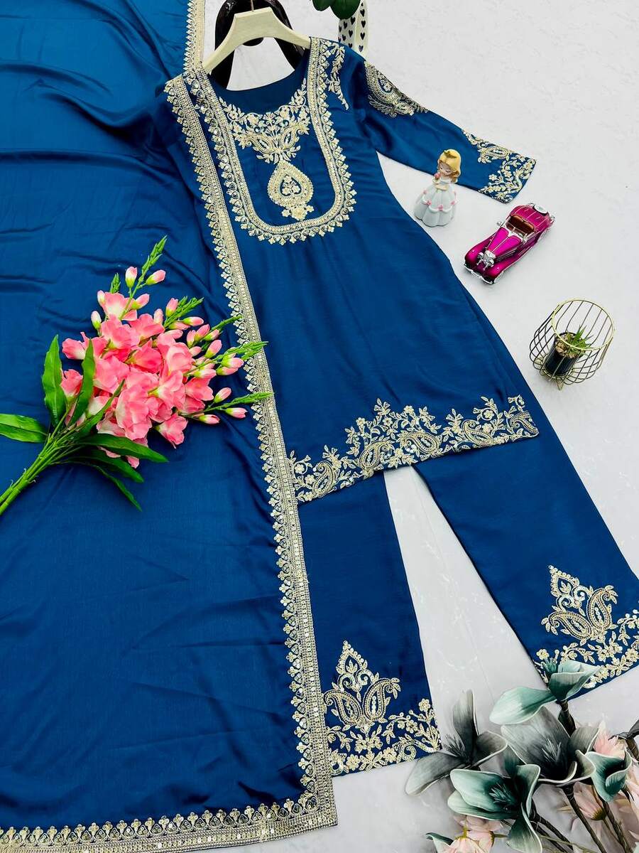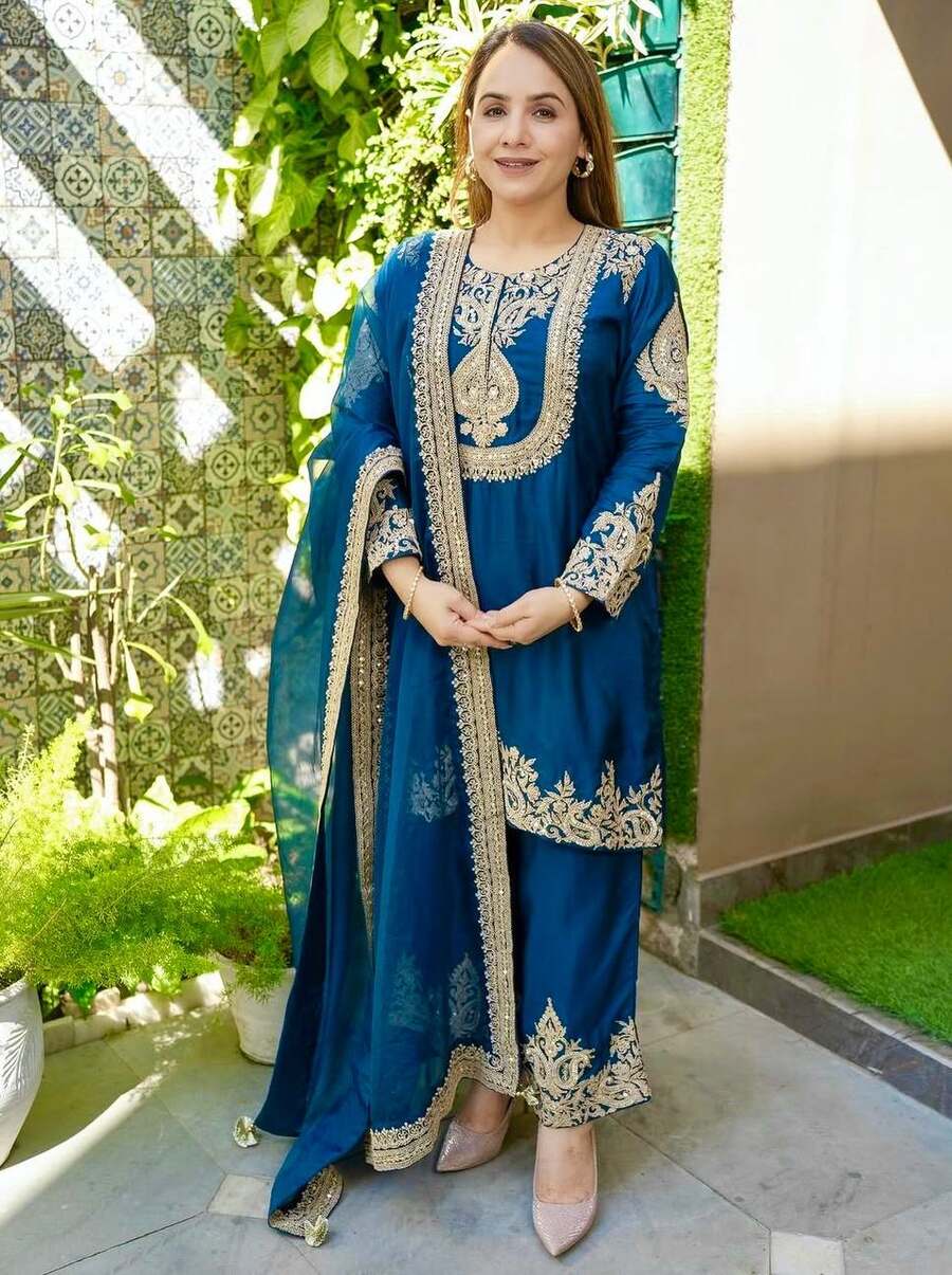 RICH LOOK CHINON SILK EMBROIDERY CODING & SEQUENCE WORK TOP BOTTOM WITH DUPATTA BLUE