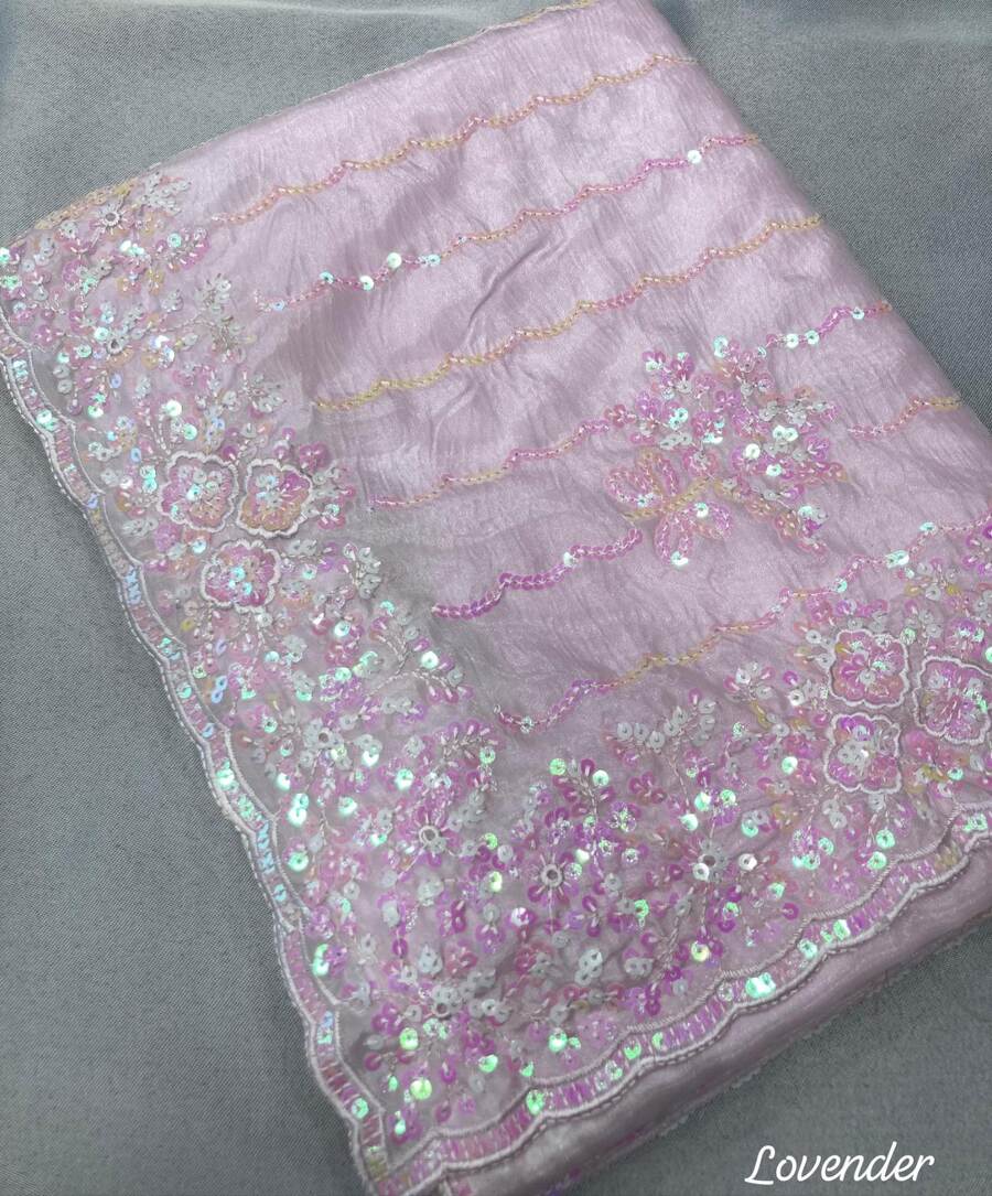 SAREE FABRIC : PREMIUM DIAMOND CHINON SILK WITH HEAVY EMBROIDERY CODING MULTI TREAD & SEQUENCE WORK WITH PIPING BORDER