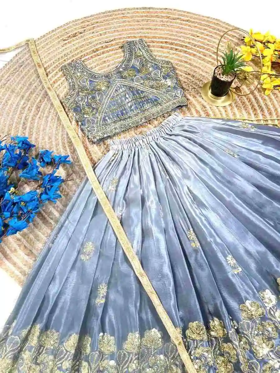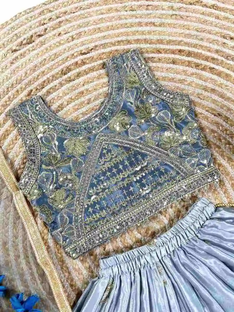 RICH LOOK CHINON SILK SEQUENCE EMBROIDERY WORK KID’S LEHENGA CHOLI WITH DUPATTA BLUE