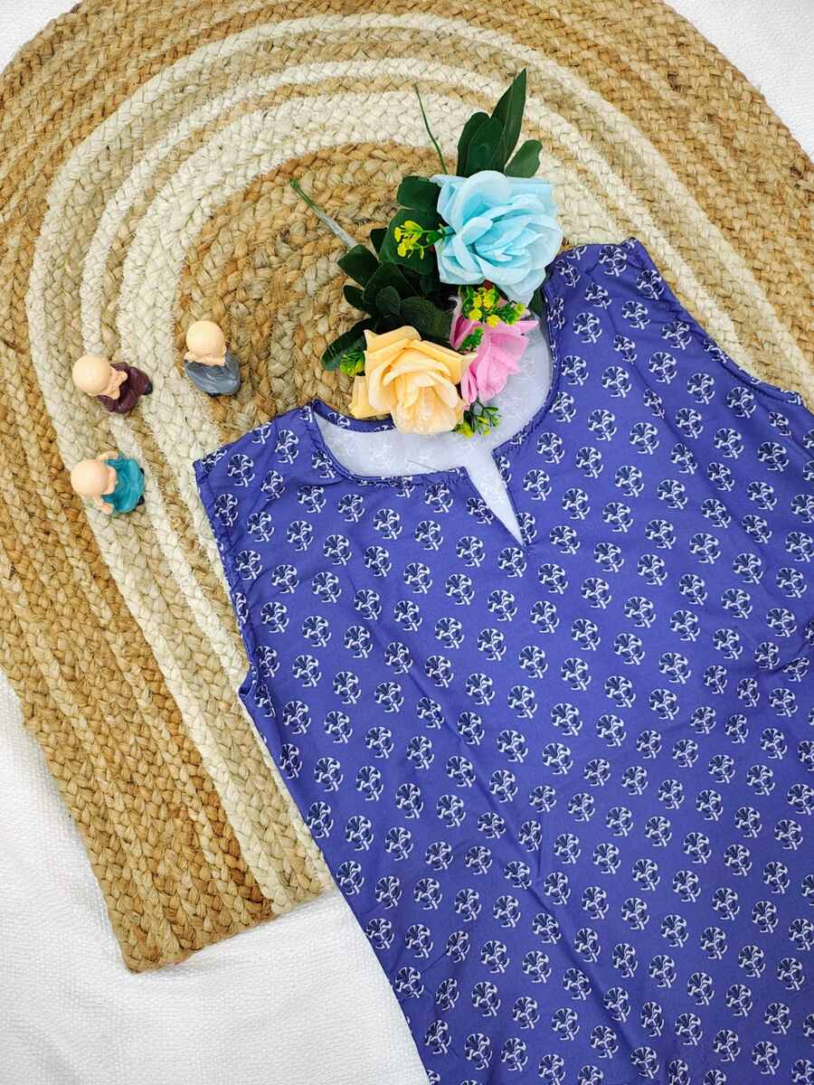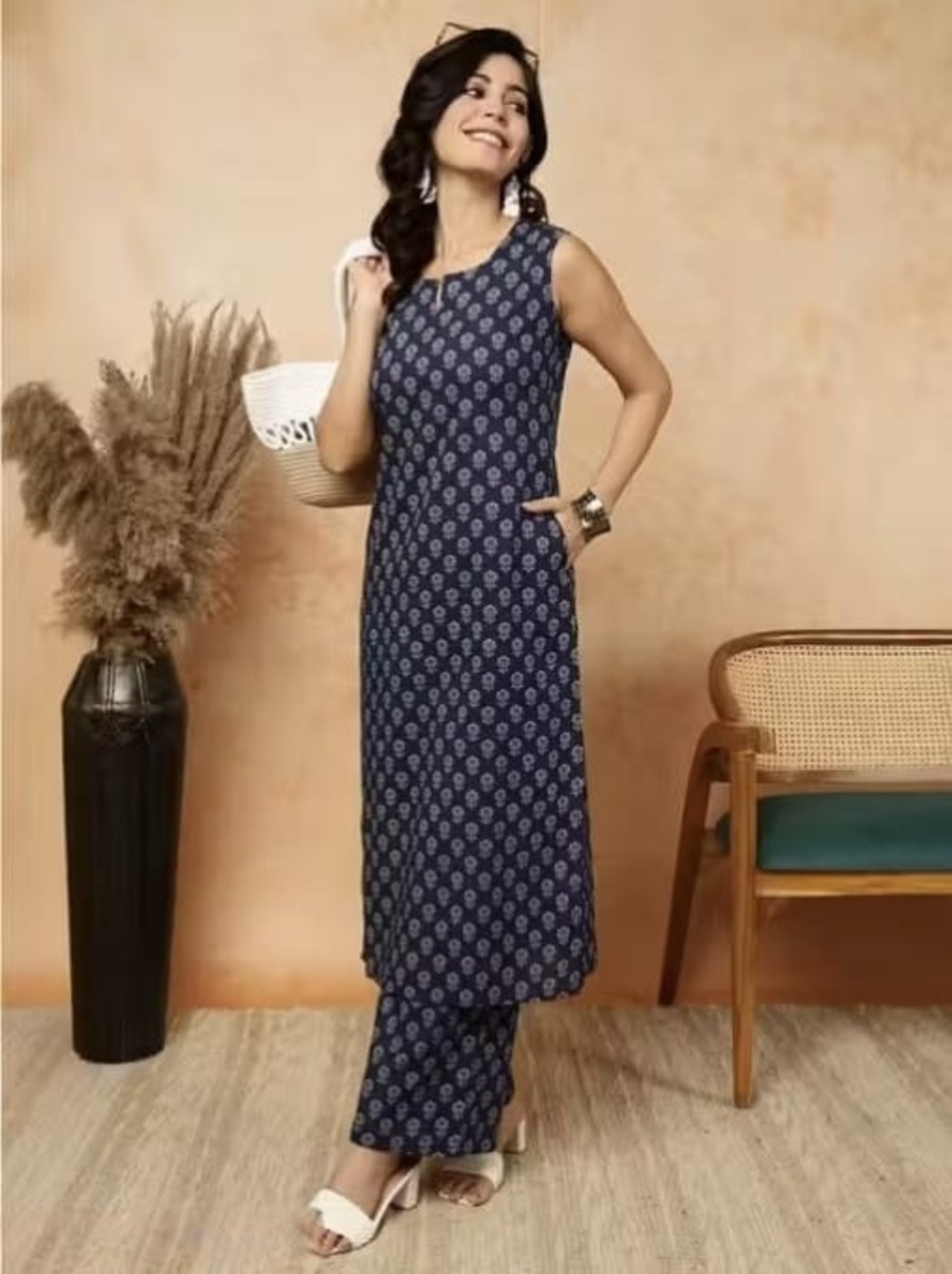 RICH LOOK COTTON BLEND PRINTED WORK TOP BOTTOM SET BLUE