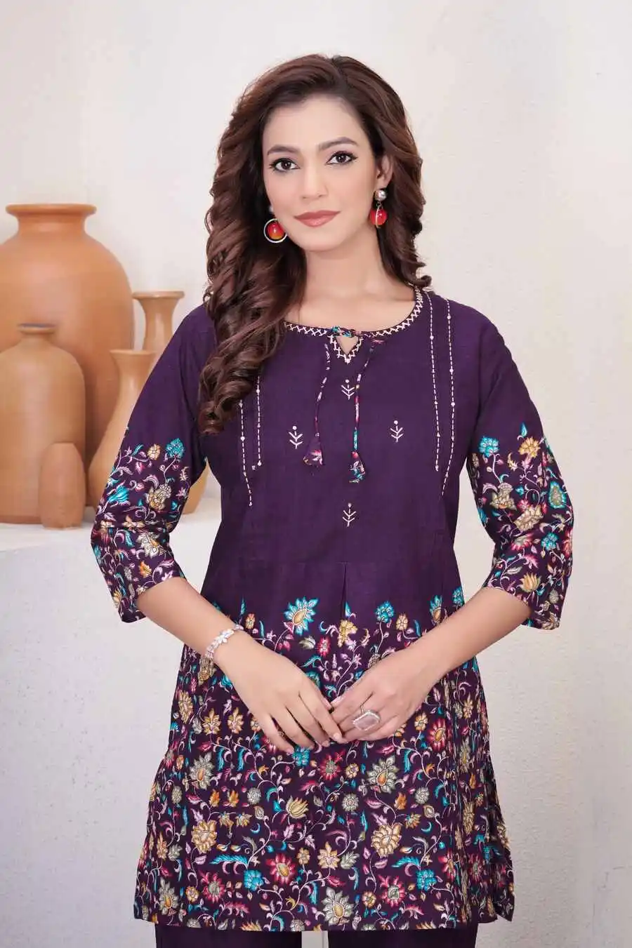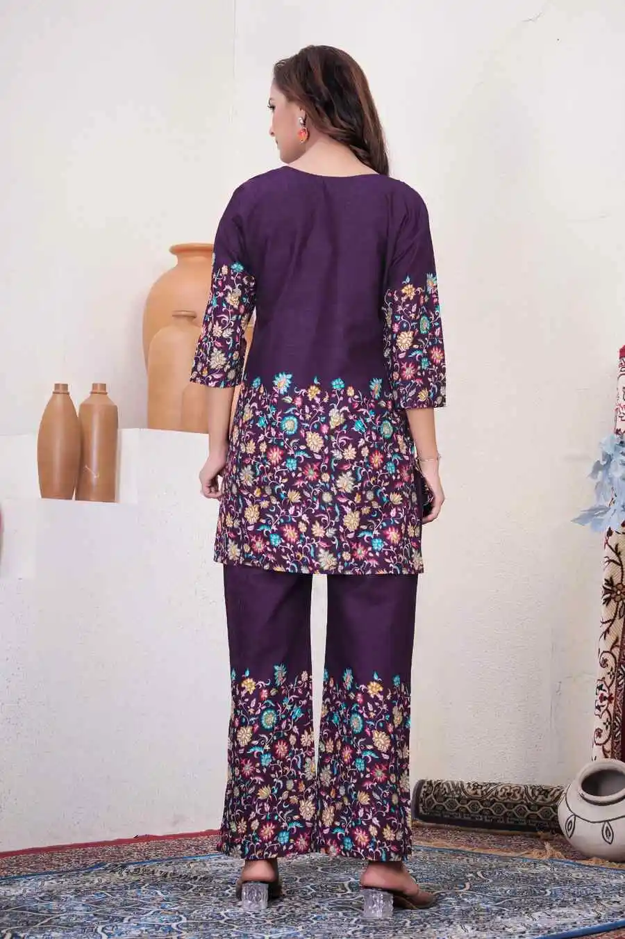 RICH LOOK COTTON PRINT WORK CO-ORD SET PURPLE