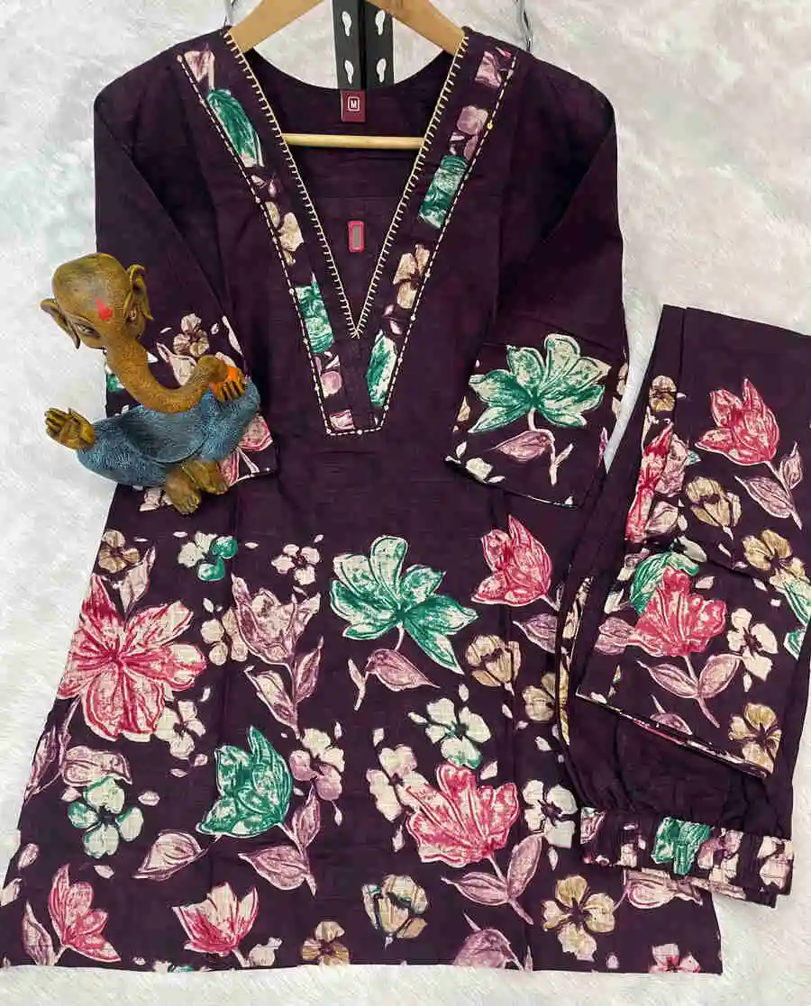 RICH LOOK COTTON PRINTS WITH HAND WORK CO-ORD SET PURPLOE