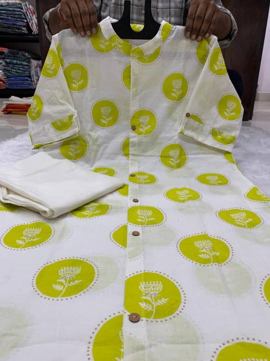 RICH LOOK COTTON RAYON DIGITAL PRINT WORK KURTI WITH PENT SET LEMON