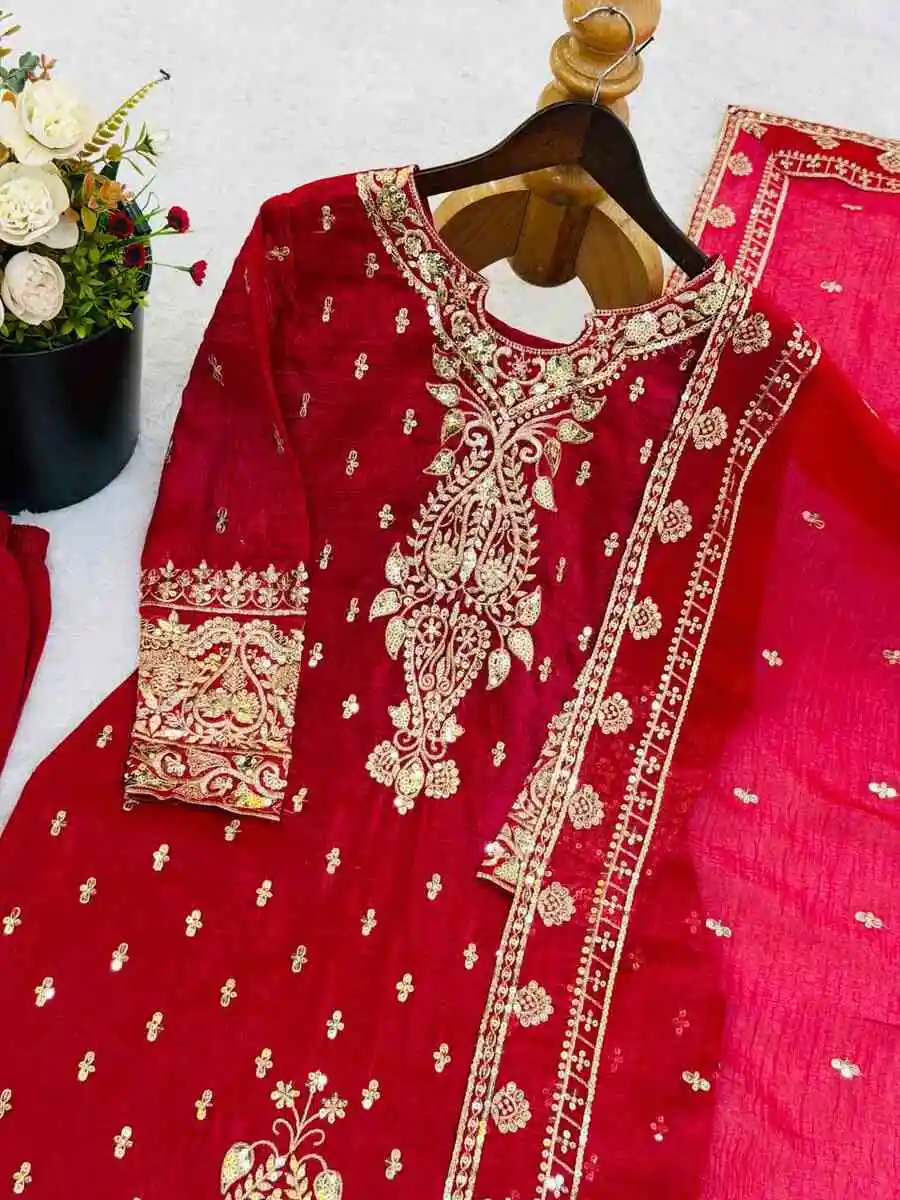 RICH LOOK CRUNCHY SILK EMBROIDERY SEQUENCE WORK TOP BOTTOM WITH DUPATTA RANI