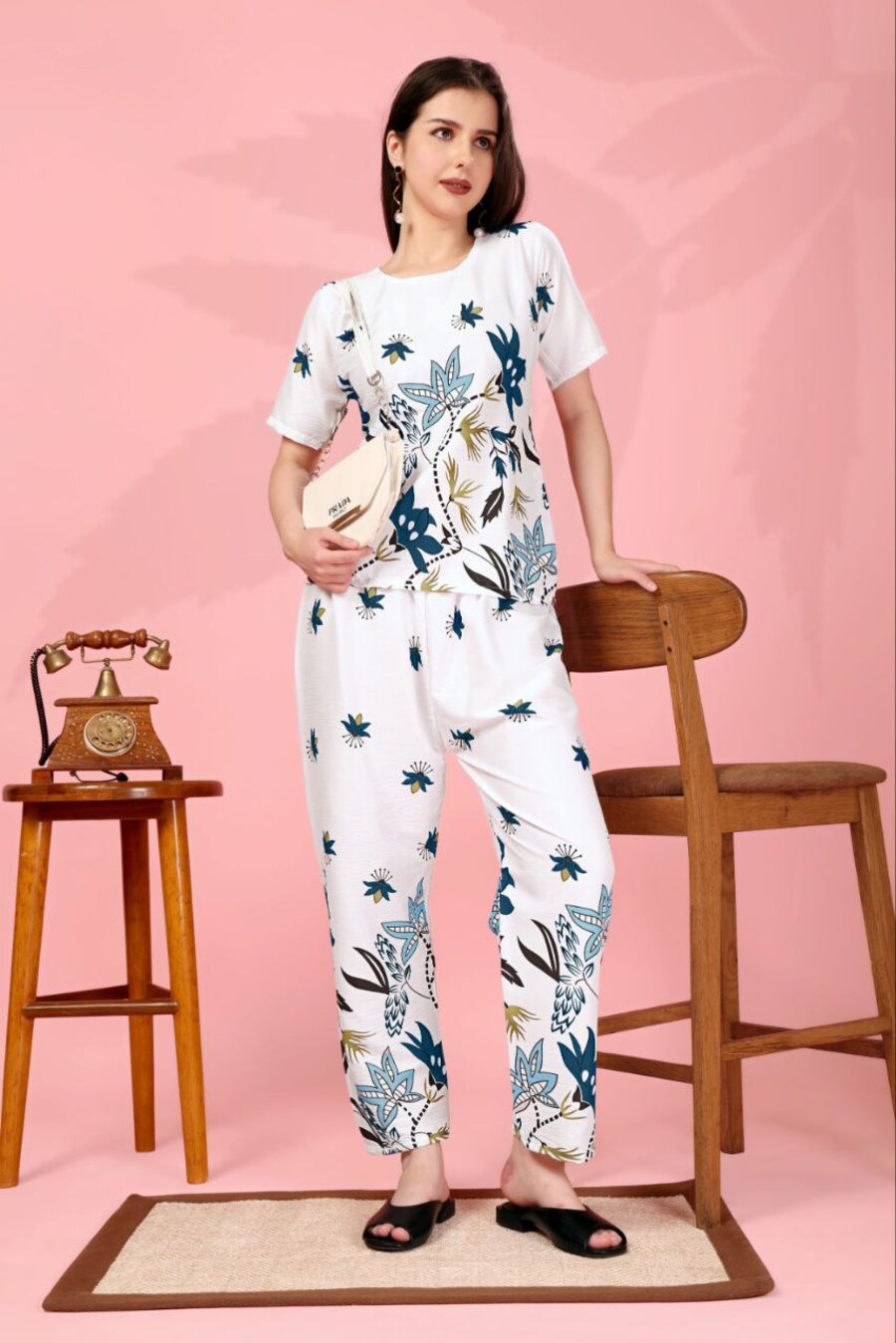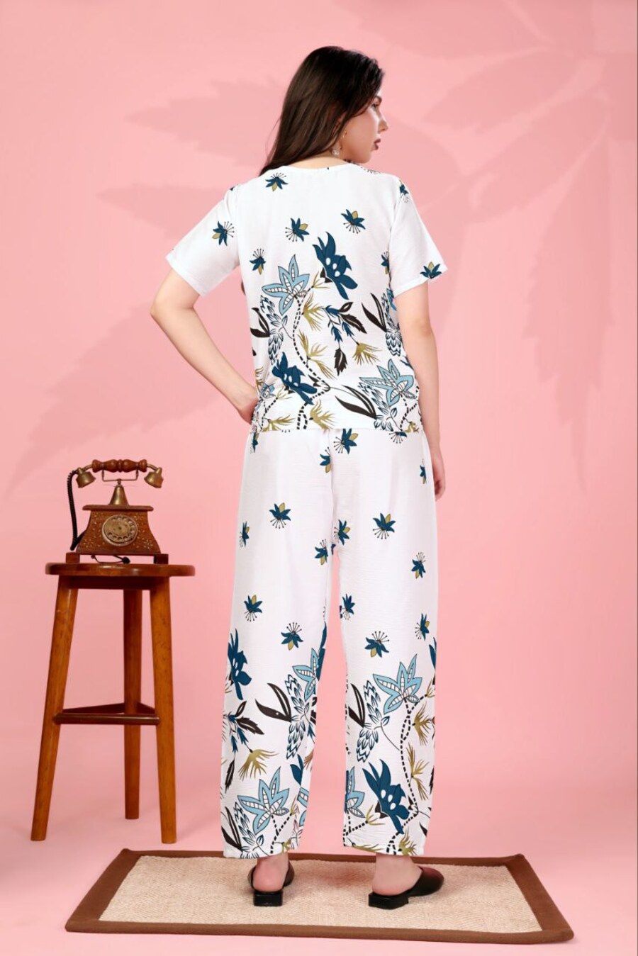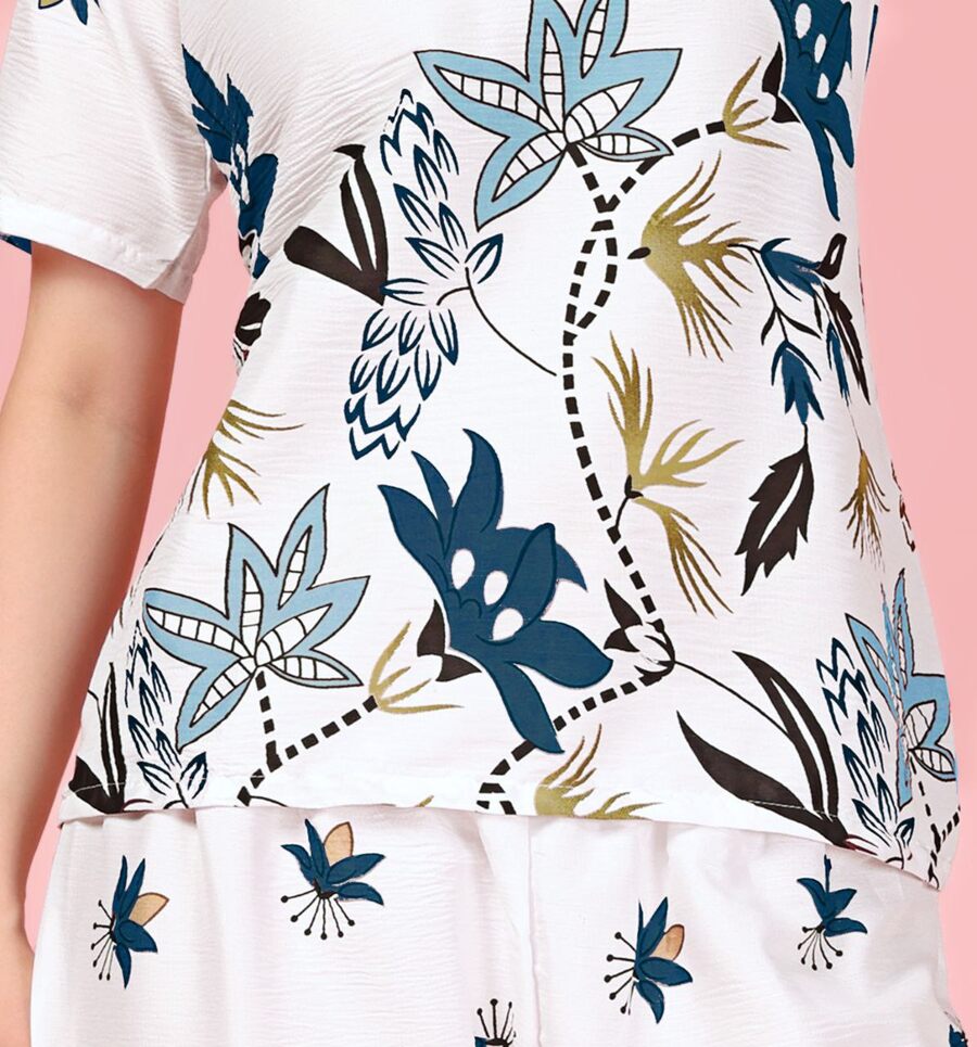 RICH LOOK DELTA MILL PRINT WORK TOP PENT CO-ORD SET BLUE