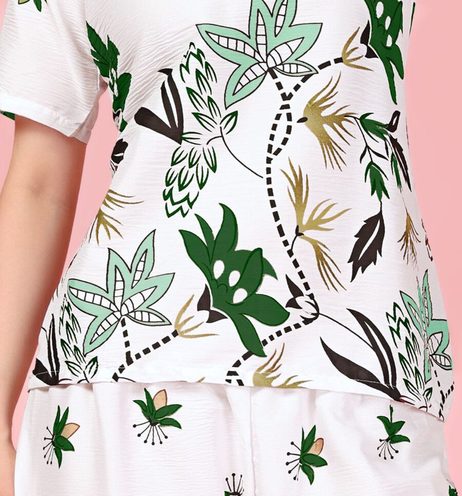 RICH LOOK DELTA MILL PRINT WORK TOP PENT CO-ORD SET GREEN
