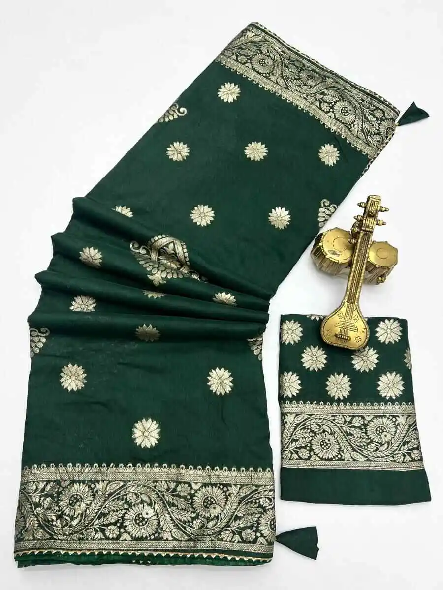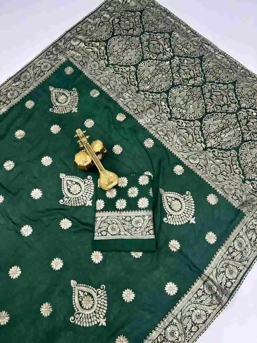 RICH LOOK DOLA SILK ZARI AND WEAVING WITH PIPING LACE BORDER WORK SAREE WITH UNSTITCHED BLOUSE GREEN
