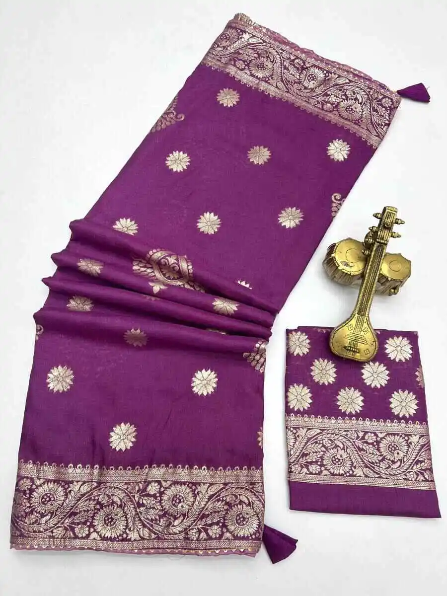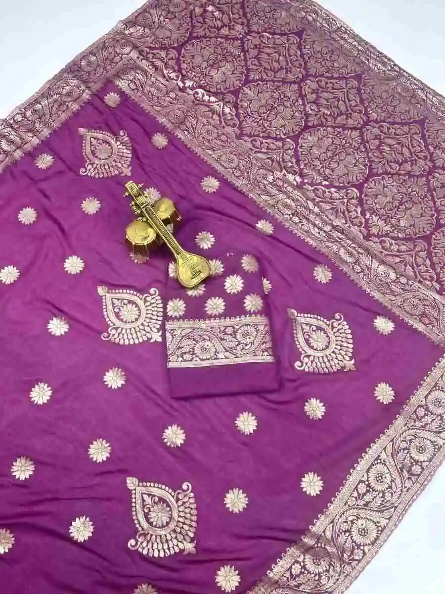RICH LOOK DOLA SILK ZARI AND WEAVING WITH PIPING LACE BORDER WORK SAREE WITH UNSTITCHED BLOUSE PURPLE