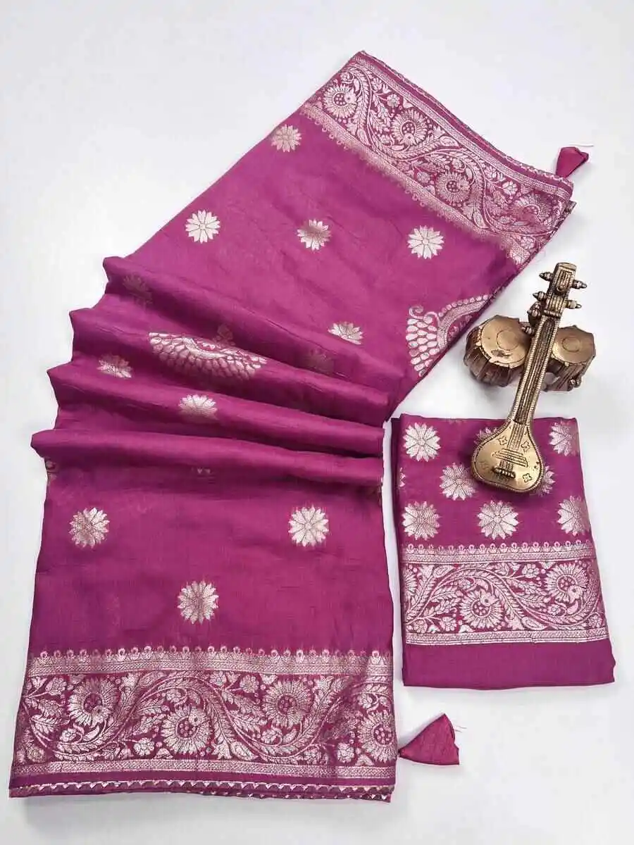 GOLDEN ZARI WEAVING JACQUARD SAREE WITH RICH PALLU AND BEAUTIFUL WEAVING BLOUSE