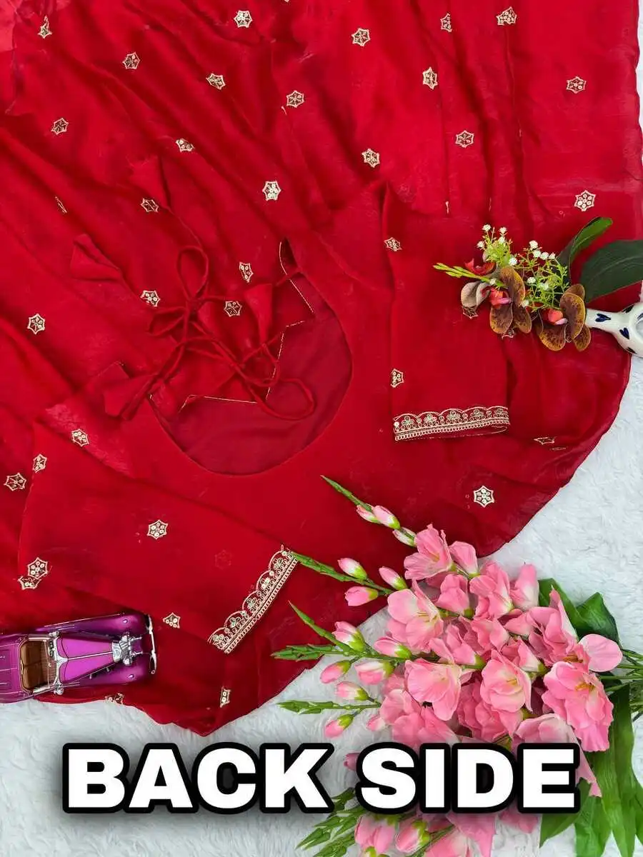 GOWN FABRIC: GEORGETTE WITH HEAVY EMBROIDERY SEQUENCE DESIGN WORK