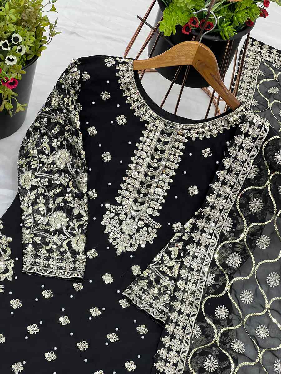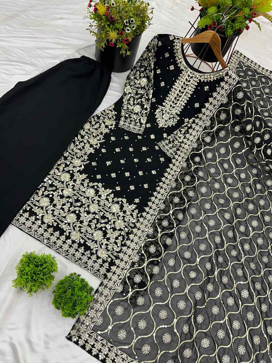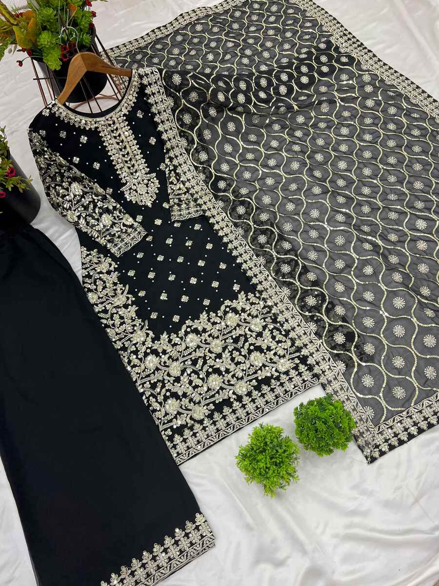 RICH LOOK FAUX GEORGETTE EMBROIDERY SEQUENCE AND BEADS WORK TOP PALAZZO WITH DUPATTA BLACK