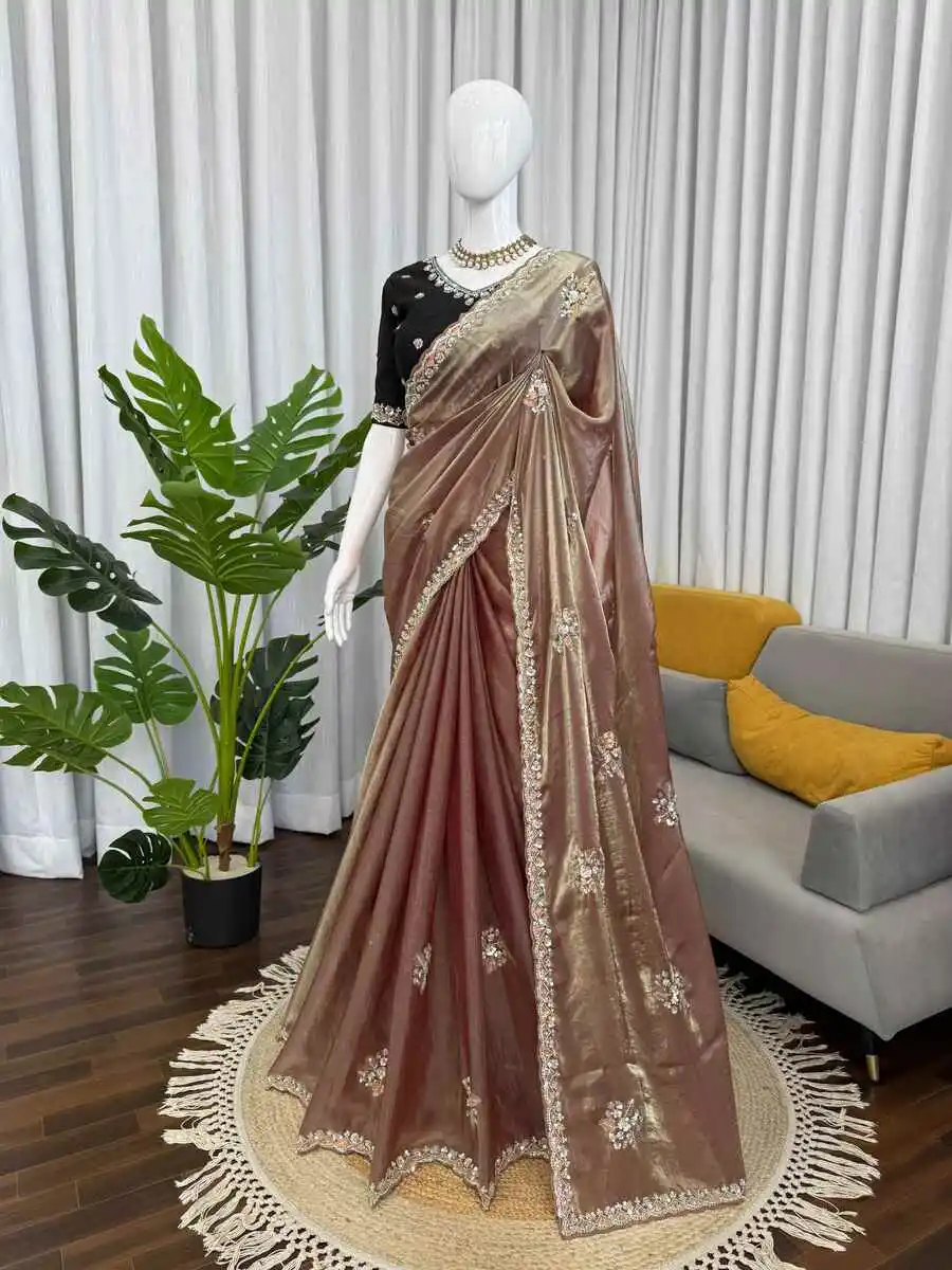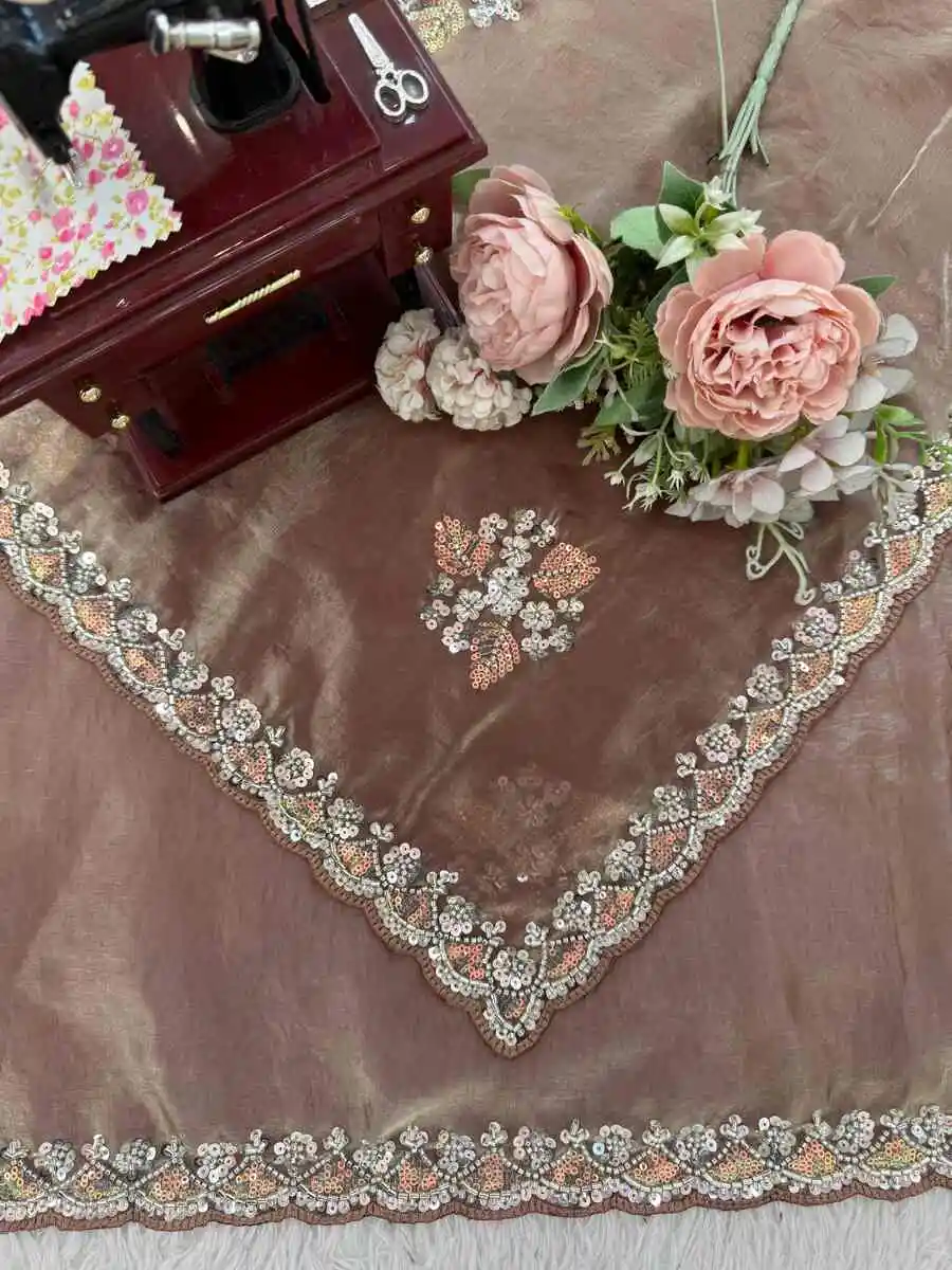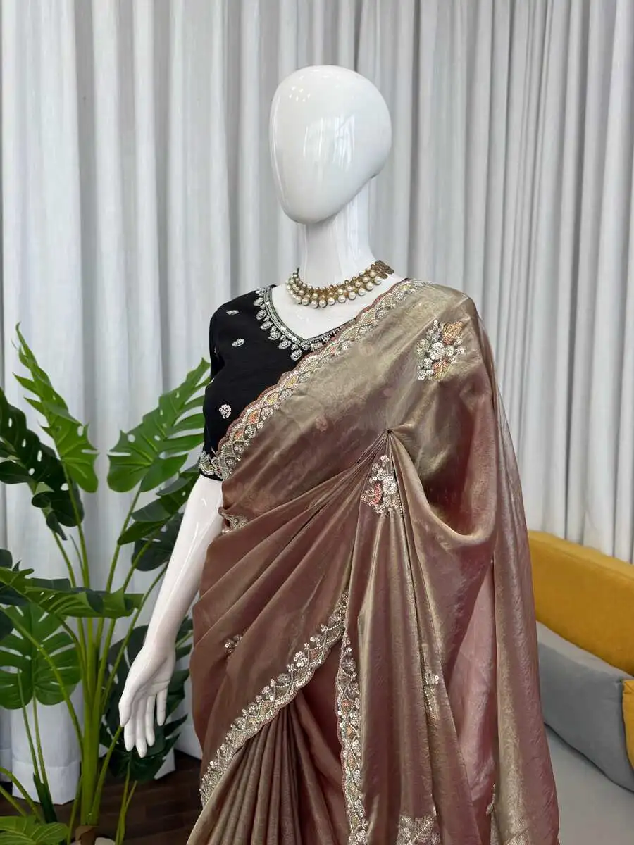 RICH LOOK FENDY SILK BEADS WITH THREAD & SEQUENCE WORK SAREE WITH UNSTITCHED BLOUSE ONION