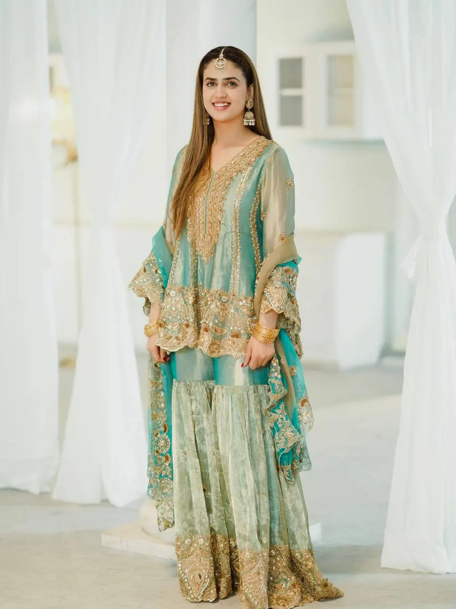 SHARARA WORK : HEAVY FANCY EMBROIDERY AND 5MM SEQUENCE WORK