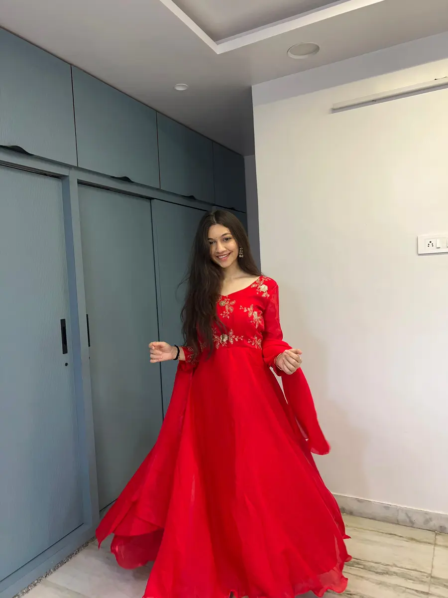RICH LOOK FENDY THREAD, EMBROIDERY , CODING AND SEQUENCE WORK GOWN WITH DUPATTA RED