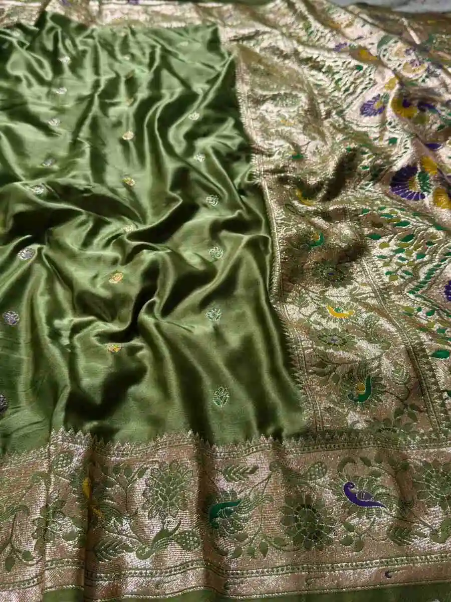 RICH LOOK GAJJI SATIN ZARI MEENA & WITH BUTTI WITH PAITHANI PALLU WORK SAREE WITH UNSTITCHED BLOUSE PISTA