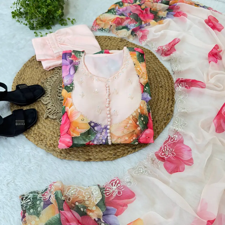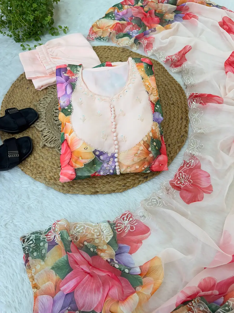 RICH LOOK GEORGETTE DIGITAL PRINT AND HANDWORK GOWN BOTTOM WITH DUPATTA PEACH