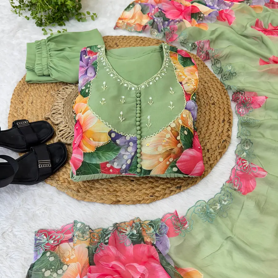 RICH LOOK GEORGETTE DIGITAL PRINT AND HANDWORK GOWN BOTTOM WITH DUPATTA PISTA