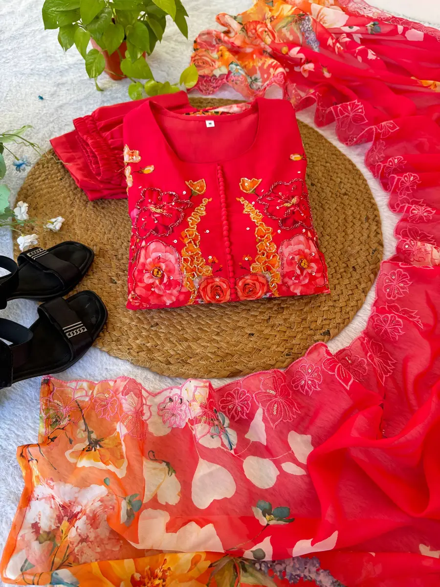 RICH LOOK GEORGETTE DIGITAL PRINT AND HANDWORK GOWN BOTTOM WITH DUPATTA RANI
