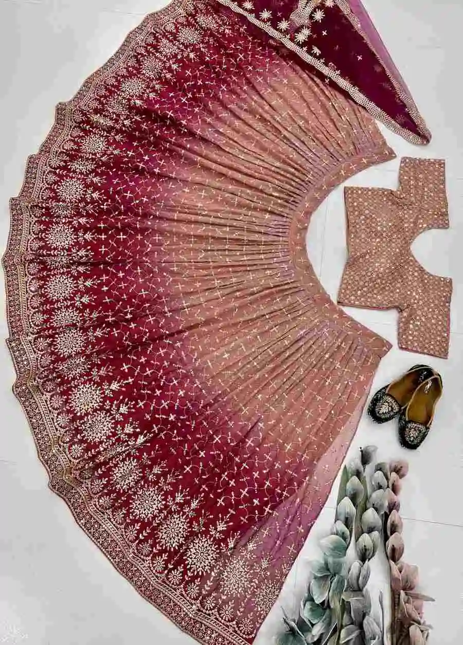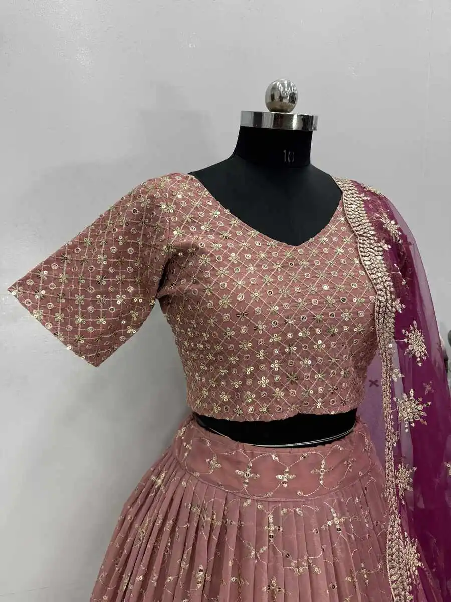 LEHENGA : GEORGETTE WITH EMBROIDERY THREAD WITH SEQUENCE DESIGN WORK, WITH KEN-KEN PACKING PATTA (FANCY DESIGNER LATKAN GIVE WITH LEHENGA FOR EXCLUSIVE LOOKS)
