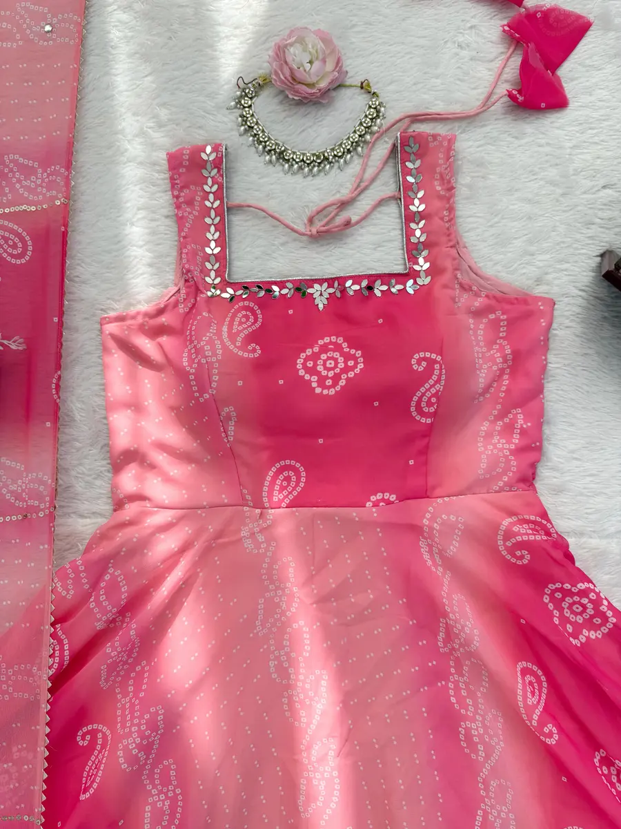 RICH LOOK GEORGETTE DIGITAL PRINT WITH REAL MIRROR HANDWORK GOWN BOTTOM WITH DUPATTA BABY PINK