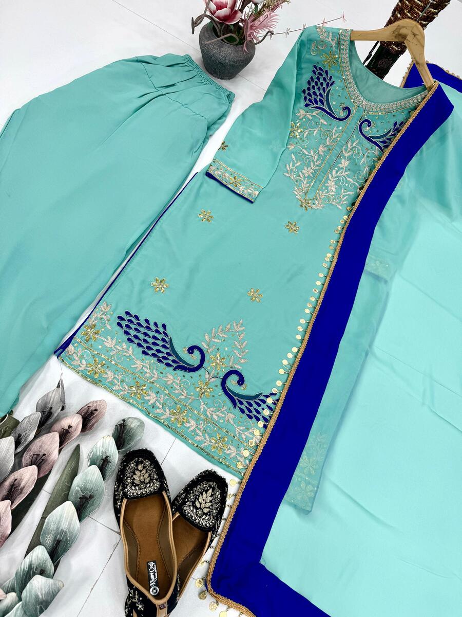 RICH LOOK GEORGETTE EMBROIDERY CODING SEQUENCE WORK TOP PATIYALA WITH DUPATTA SKY