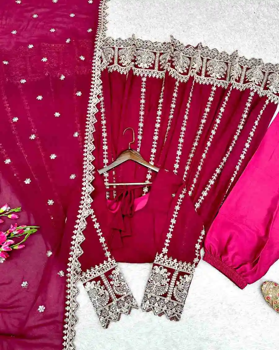RICH LOOK GEORGETTE EMBROIDERY SEQUENCE & CODING DORI WORK GOWN BOTTOM WITH DUPATTA RANI