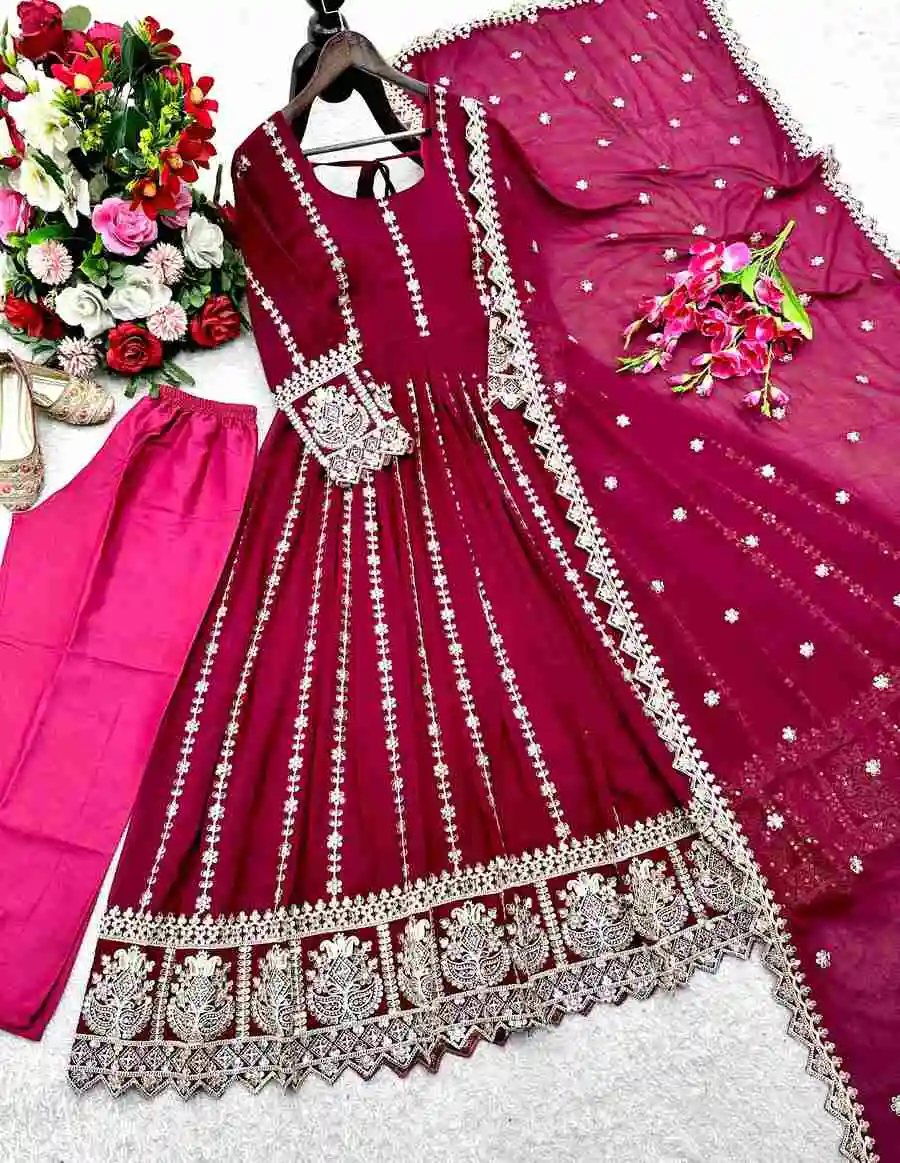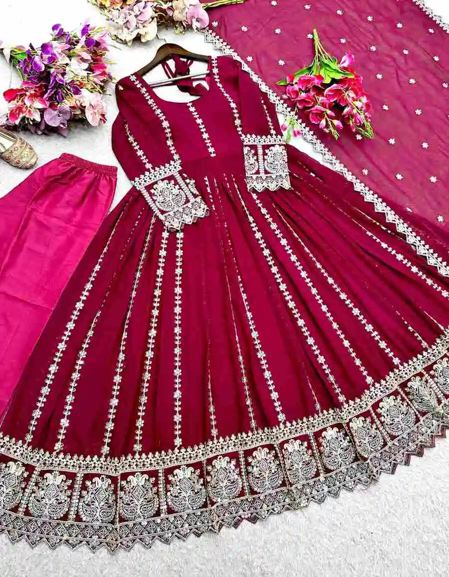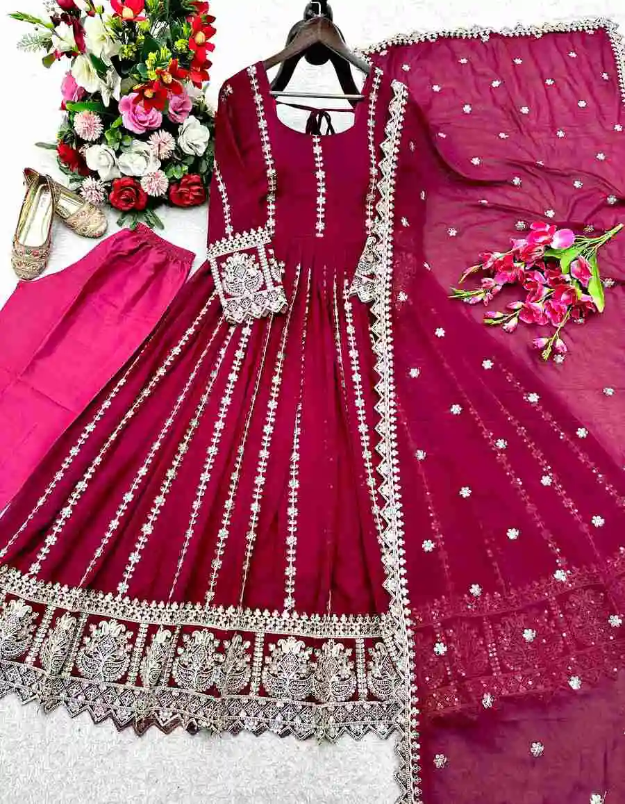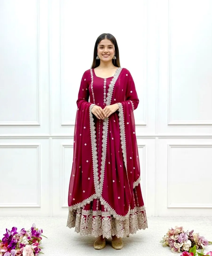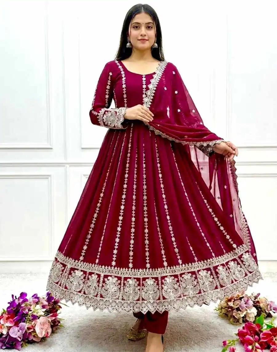 GOWN :- PURE FAUX GEORGETTE WITH EMBROIDERY SEQUENCE DESIGN WORK