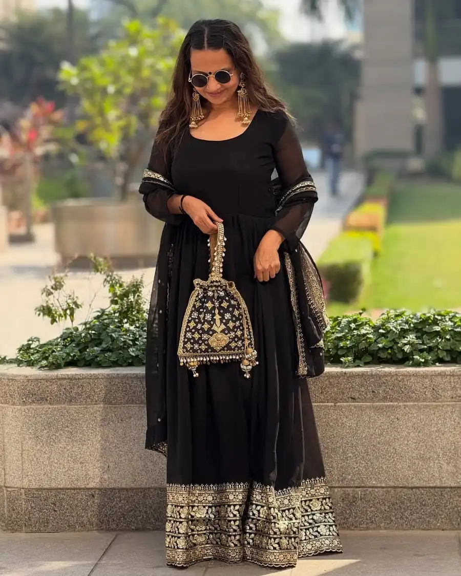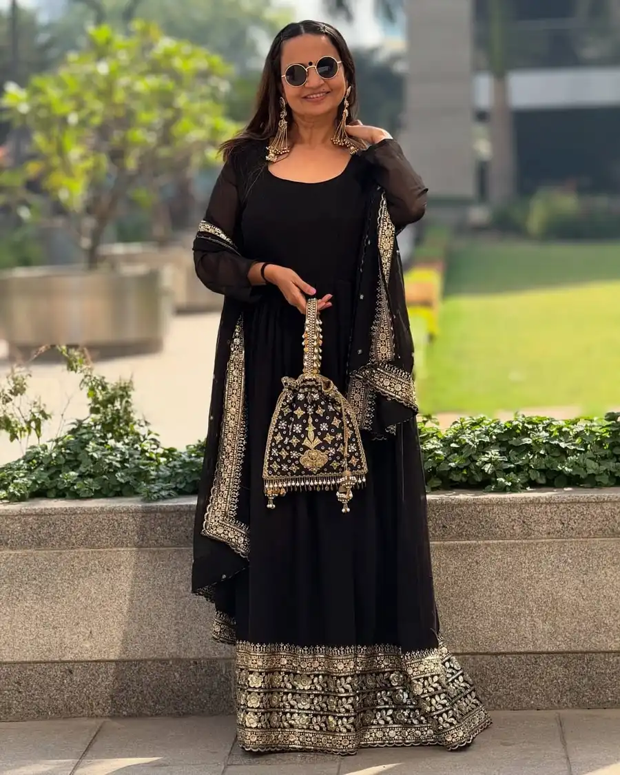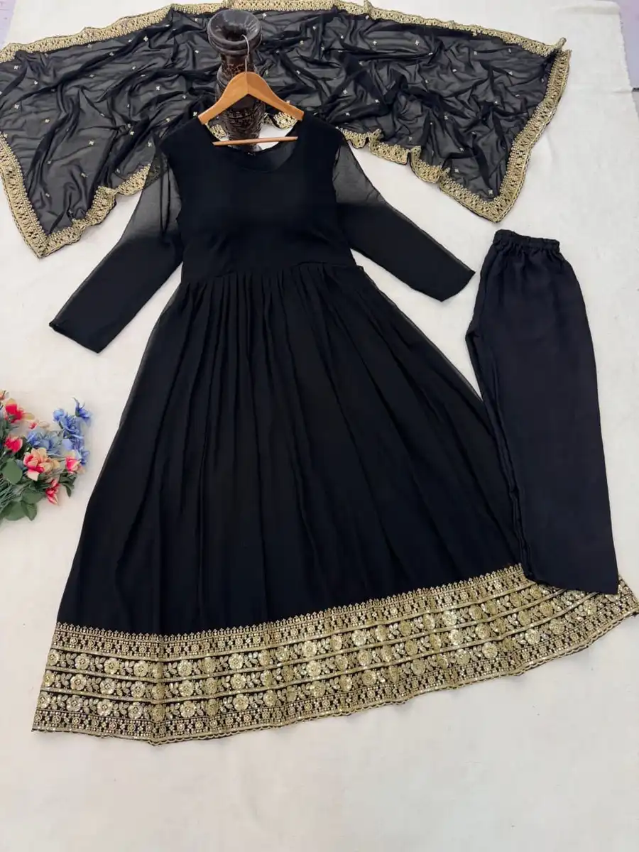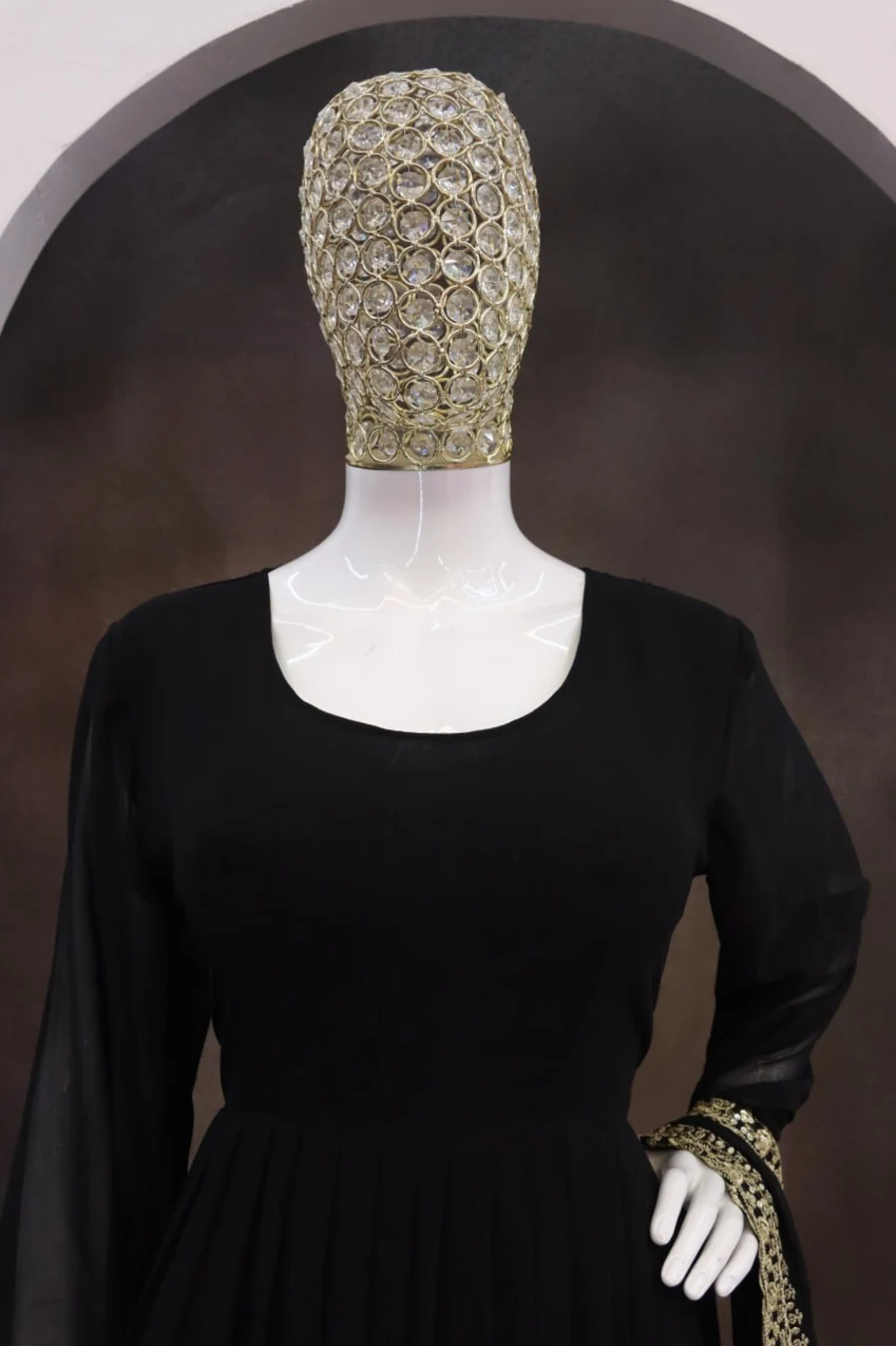 RICH LOOK GEORGETTE EMBROIDERY SEQUENCE WORK GOWN BOTTOM WITH DUPATTA BLACK